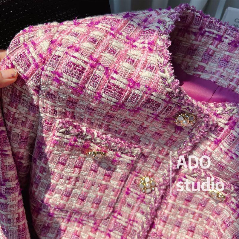Nomikuma ピンクツイードコート女性 2022 秋生き抜くトップス因果 O ネック長袖生き抜くトップス ロング オータム 秋物 Oネック kor23874363977