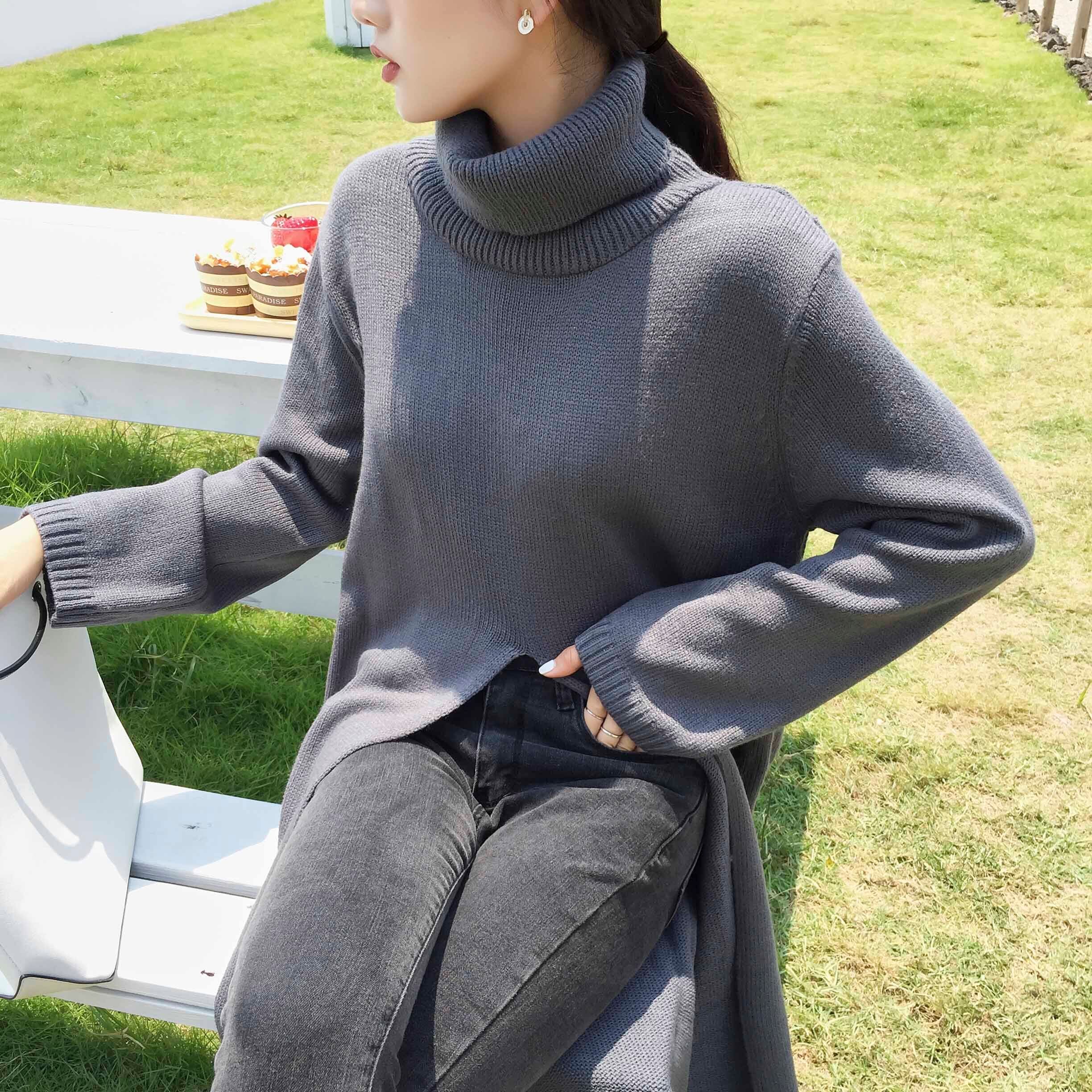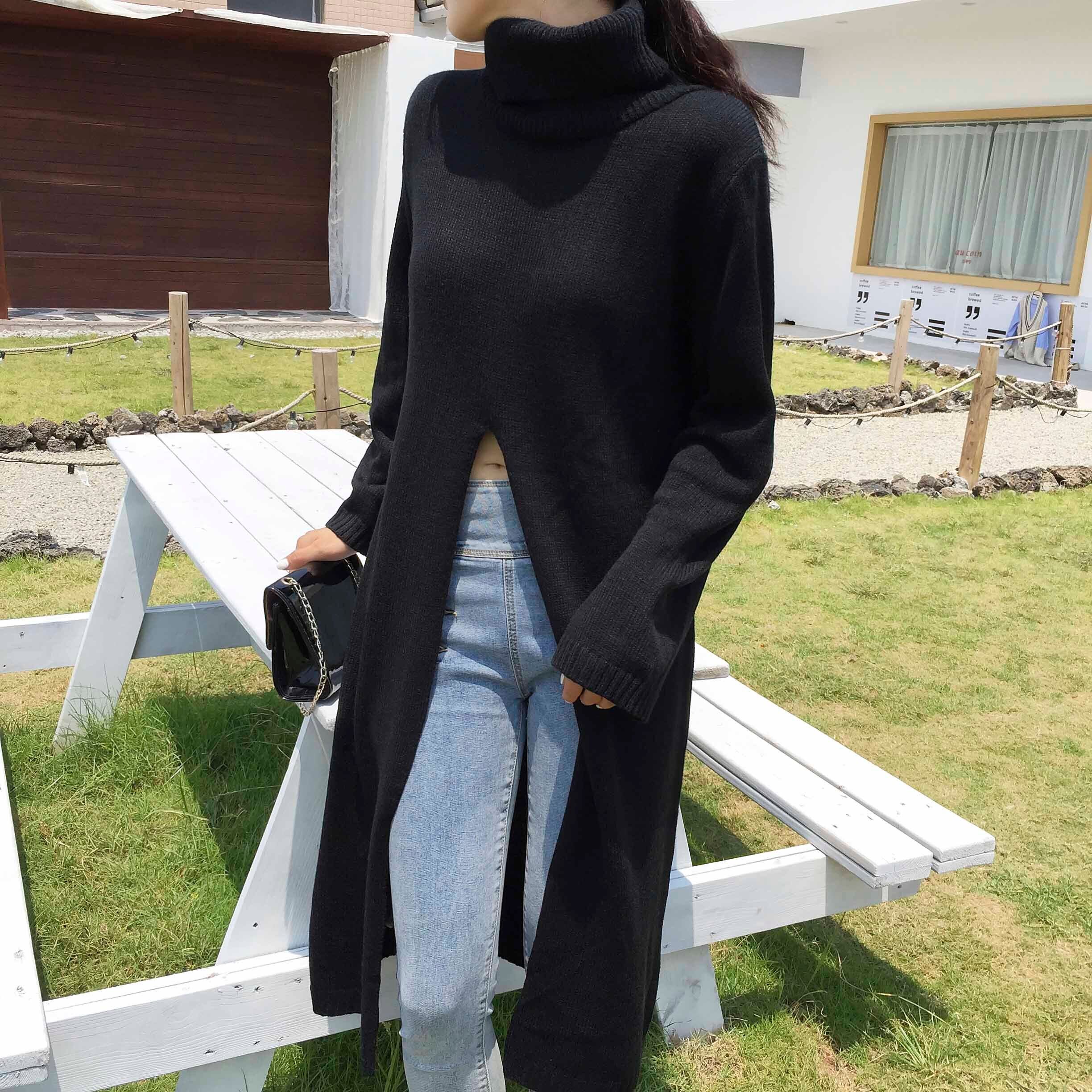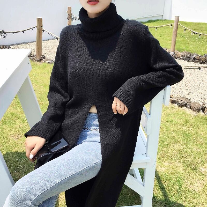 Nomikuma タートルネックスプリットロングプルオーバーニット女性 2022 秋冬女性セーター因果固体ニットトップス オータム 秋物 ウィンター 冬物 ソリッドカラー kor15473503388