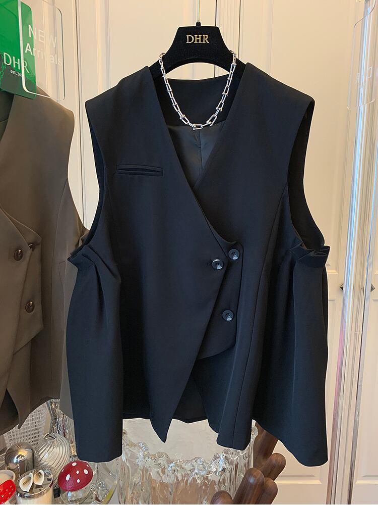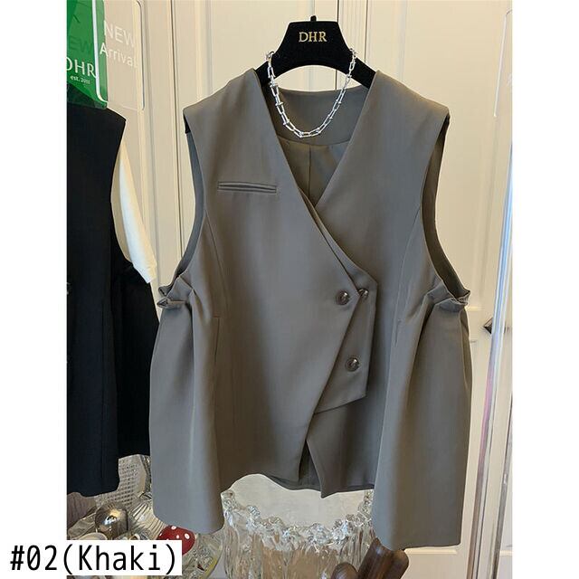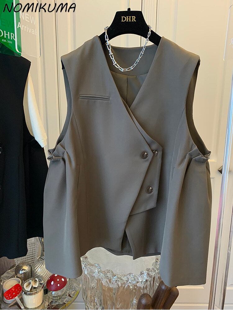 Nomikuma 因果不規則なブレザーベストコート 2022 秋のジャケット女性スタイル V ネックノースリーブチョッキ オータム 秋物 Vネック kor96218703342