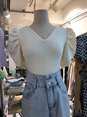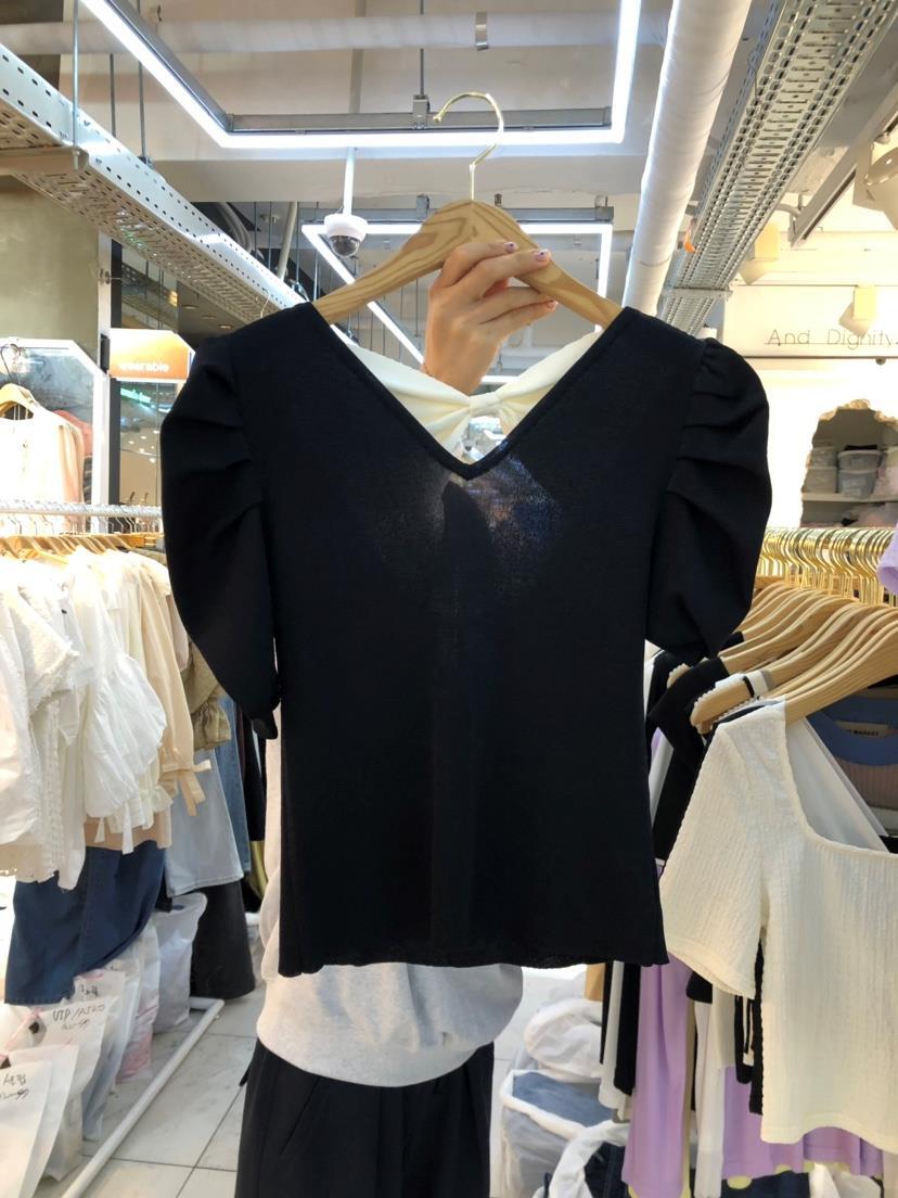 Nomikuma シックなヒットカラーちょう結び女性セーターパフスリーブ V ネックプルオーバーニットウェア 2022 夏スリムニットトップス リボン サマー 夏物 Vネック kor94900834618