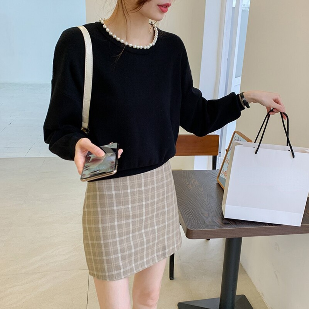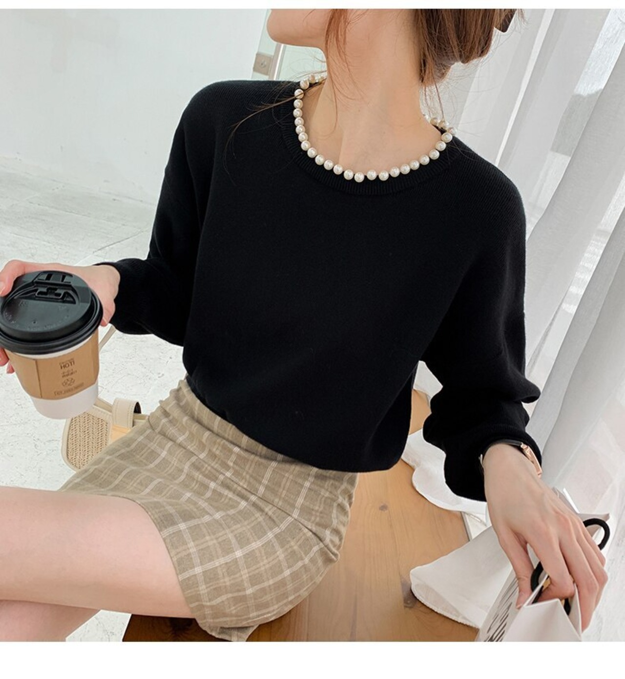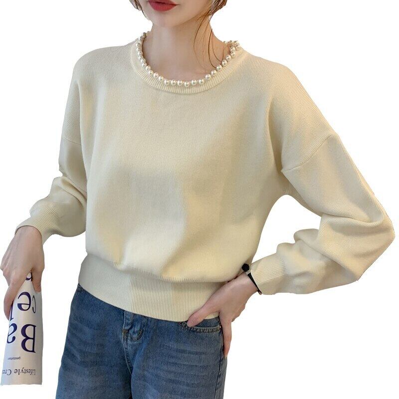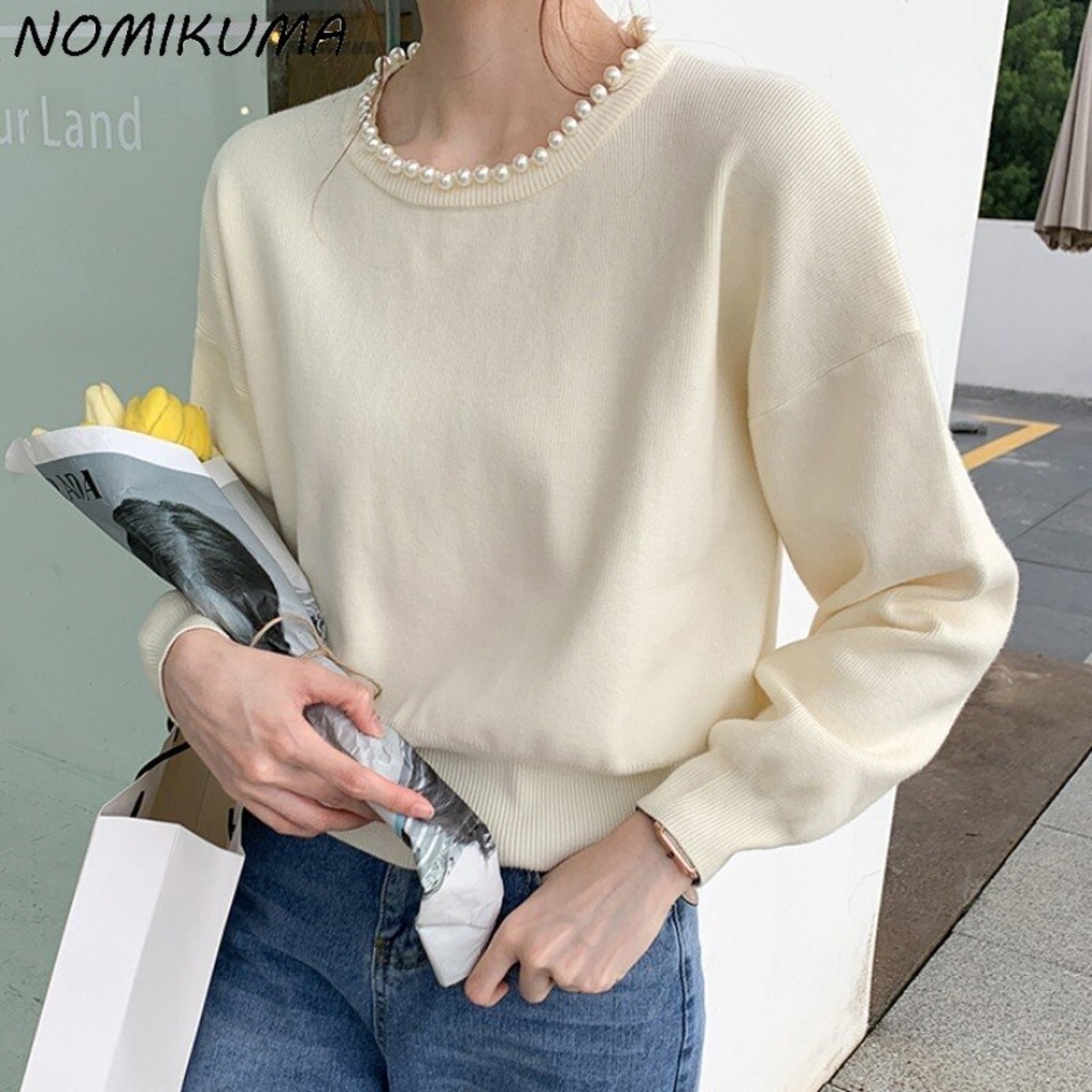 Nomikuma ビーズ O ネック女性セーター秋冬 2022 プル因果ランタン長袖ニットプルオーバートップス ロング オータム 秋物 ウィンター 冬物 Oネック kor10483081927