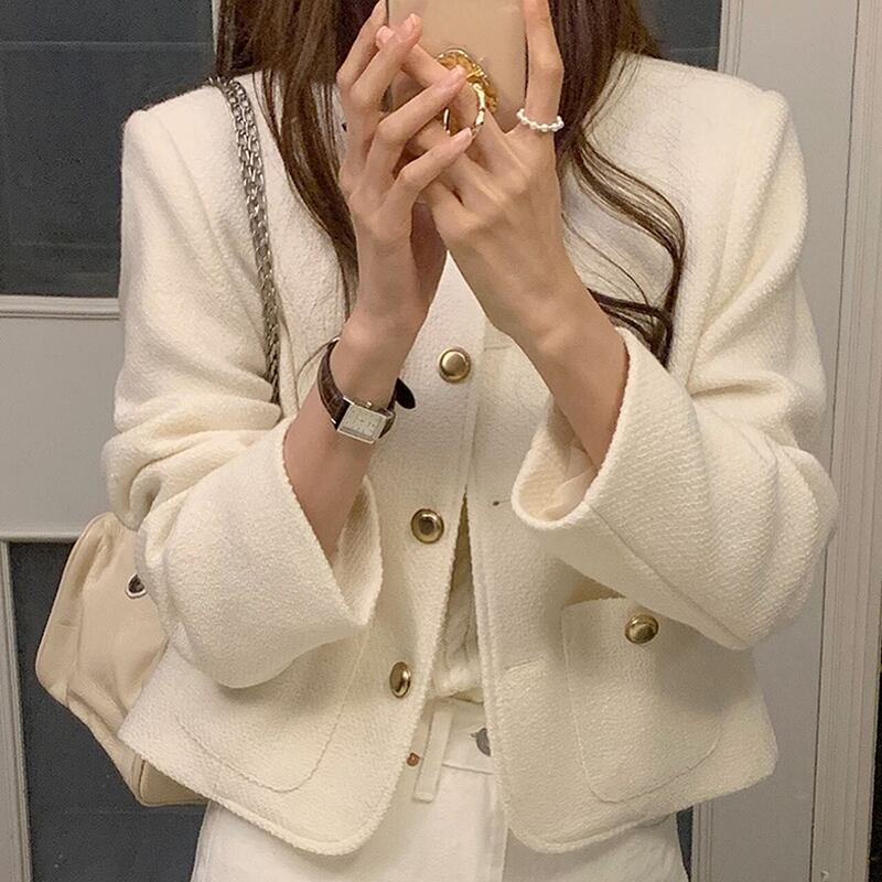 Nomikuma シックな秋の女性ウールコート長袖シングルブレスト O ネックジャケット 2022 生き抜くトップス ロング オータム 秋物 Oネック kor46210359982