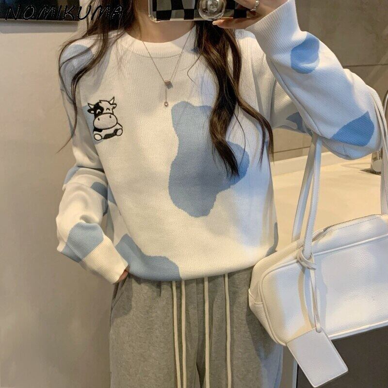 Nomikuma スタイル甘い印刷セーター長袖 O ネックプルオーバーニット 2022 秋冬女性ニットセーター ロング 大人ガーリー スウィート キュート カジュアル オータム 秋物 ウィンター 冬物 Oネック kor85313789850