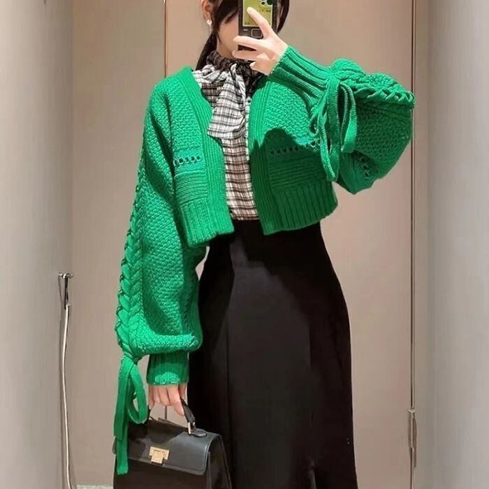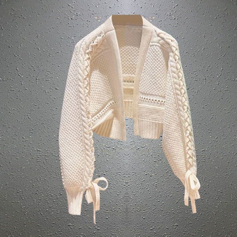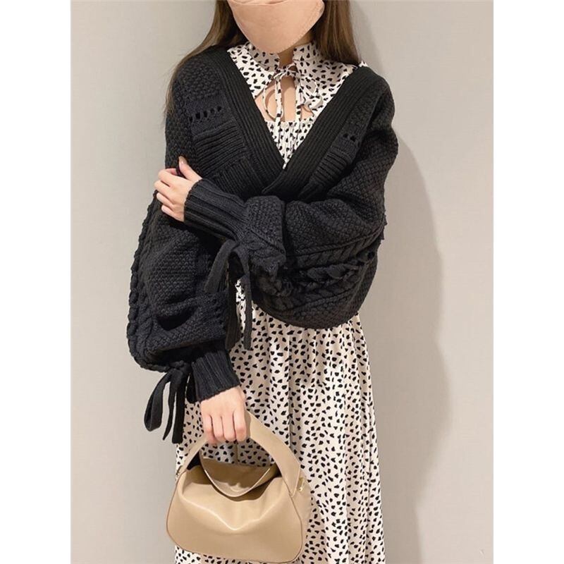KUSAHIKI 2022 秋冬 カーディガン コート ニット ウィステッド ショート セーター リボン 包帯 長袖 Vネック ニット 開編み ロング オータム 秋物 ウィンター 冬物 ステッチ kor10222651800