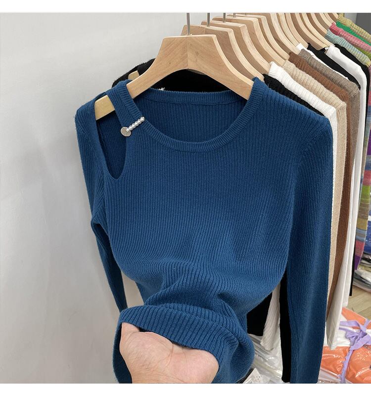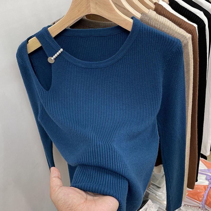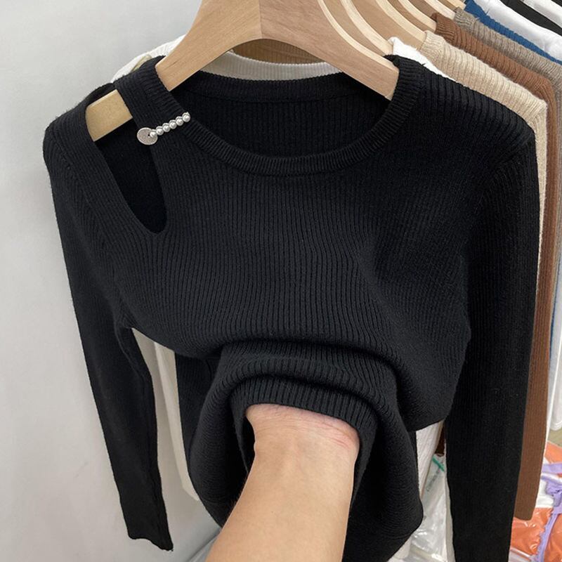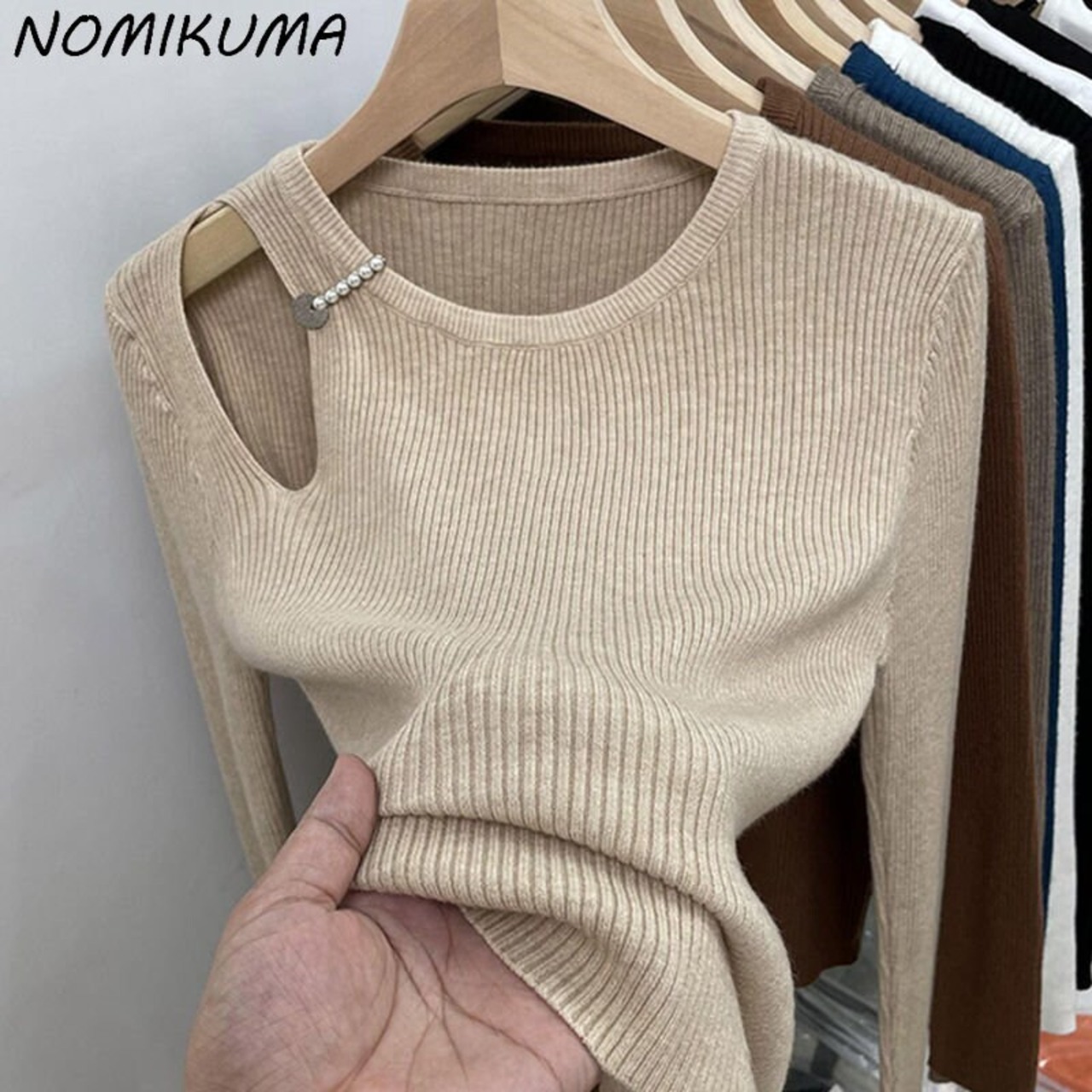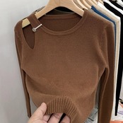 Nomikuma中空アウト長袖スリムストレッチニットトップス秋冬ベーシック女性セータープルオーバーニット ロング オータム 秋物 ウィンター 冬物 kor74731552469