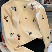 Nomikuma シックな花刺繍長袖ニットカーディガン女性 2022 秋のセーターコート因果 V ネックニット ロング オータム 秋物 花柄 Vネック kor49995445023