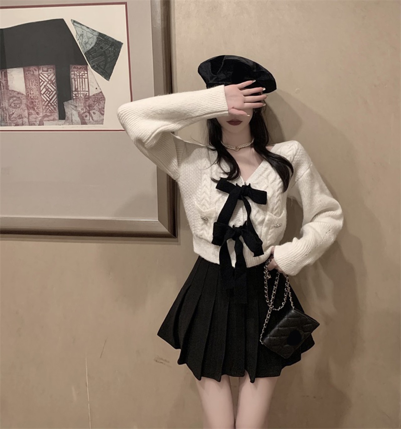 Nomikuma セーター コート シックなちょう結び V ネック 長袖 ニット トップス 2022 秋の甘いスタイル スリム ウエスト ニット カーディガン ロング リボン 大人ガーリー スウィート キュート カジュアル オータム 秋物 Vネック kor43843239051