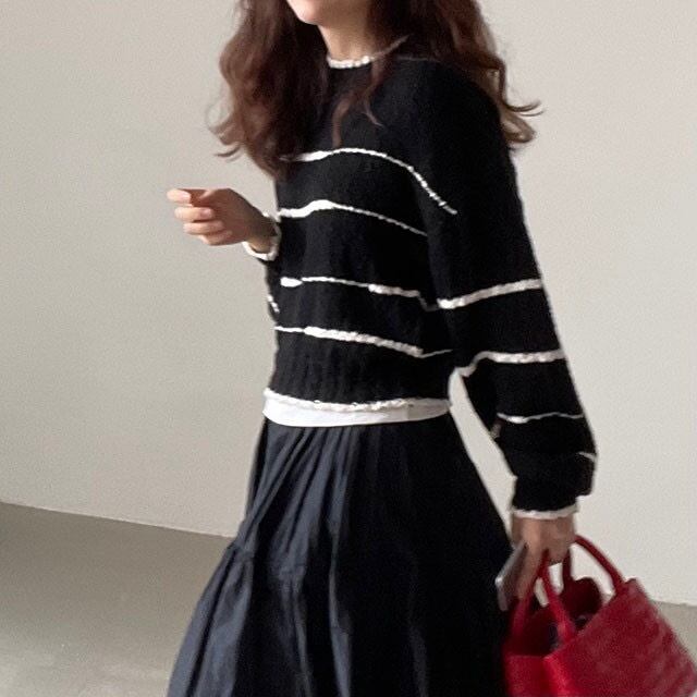 ノミクマ 因果 Oネック ヒットカラー ストライプ プルオーバー セーター 2022秋冬 プルニット トップス ジャンパー オータム 秋物 ウィンター 冬物 kor12067885854