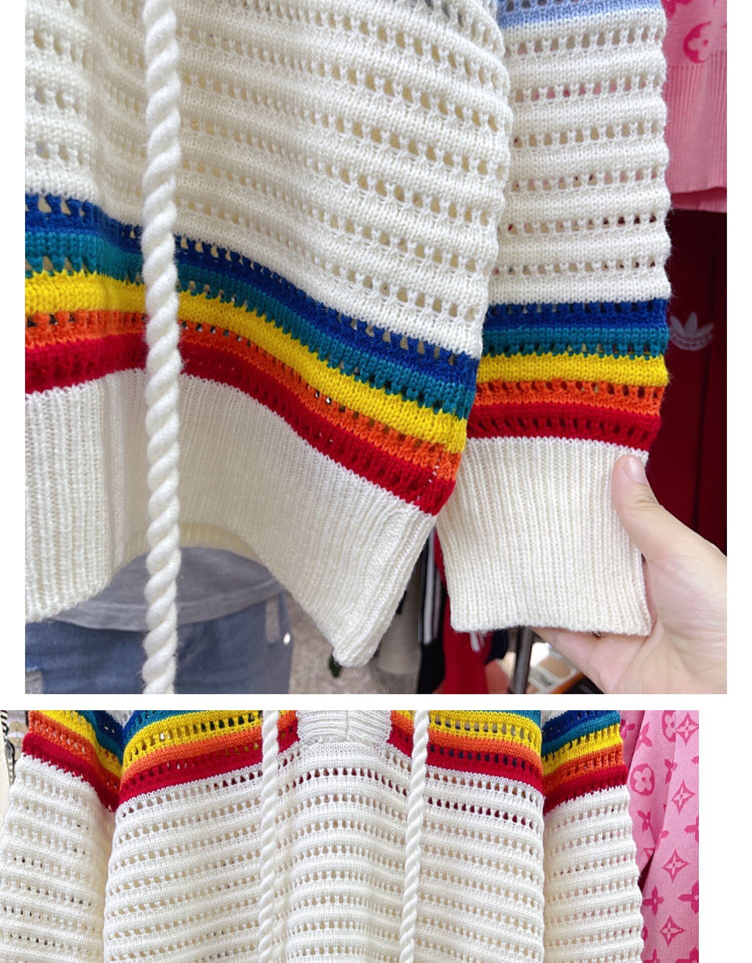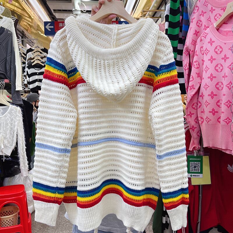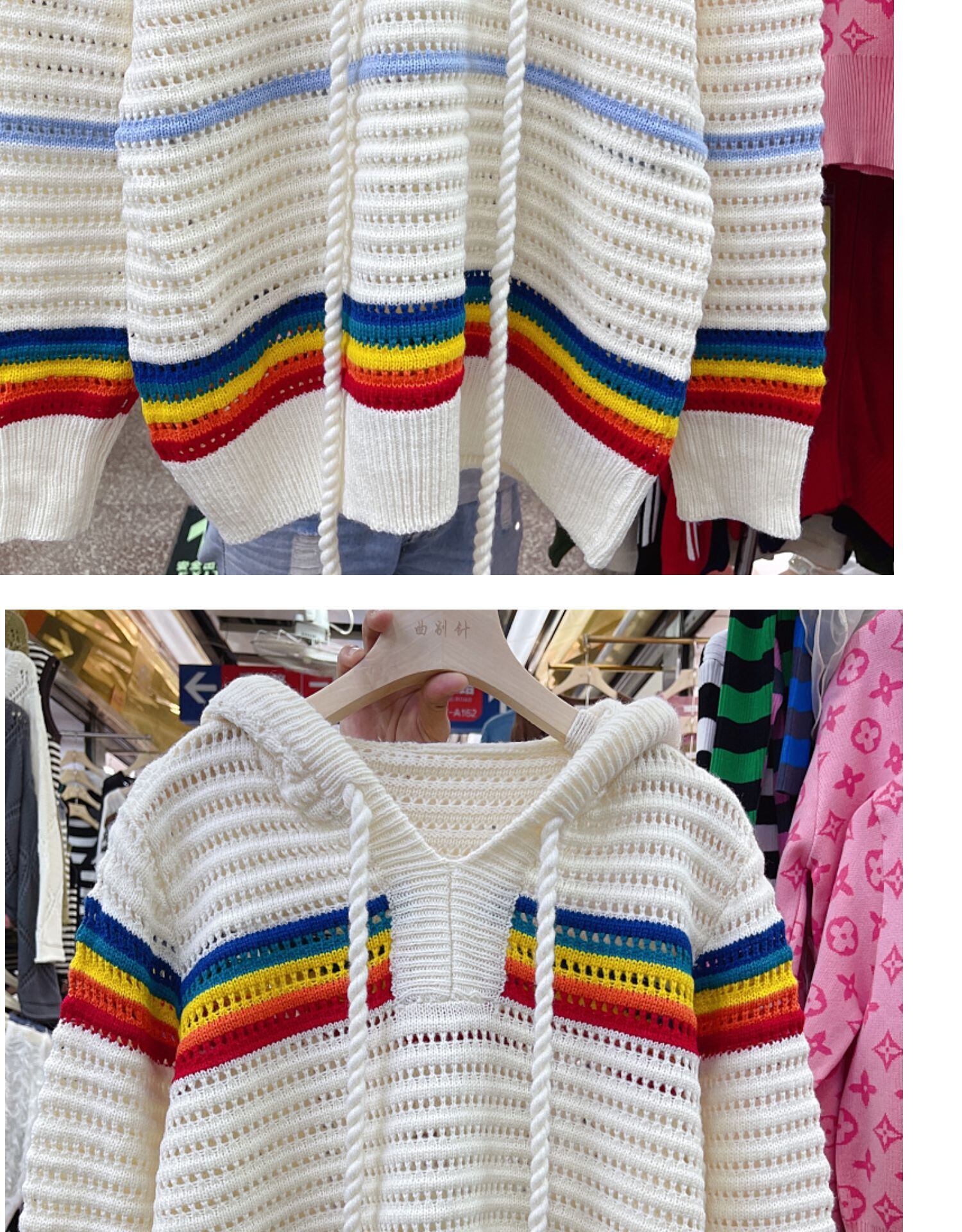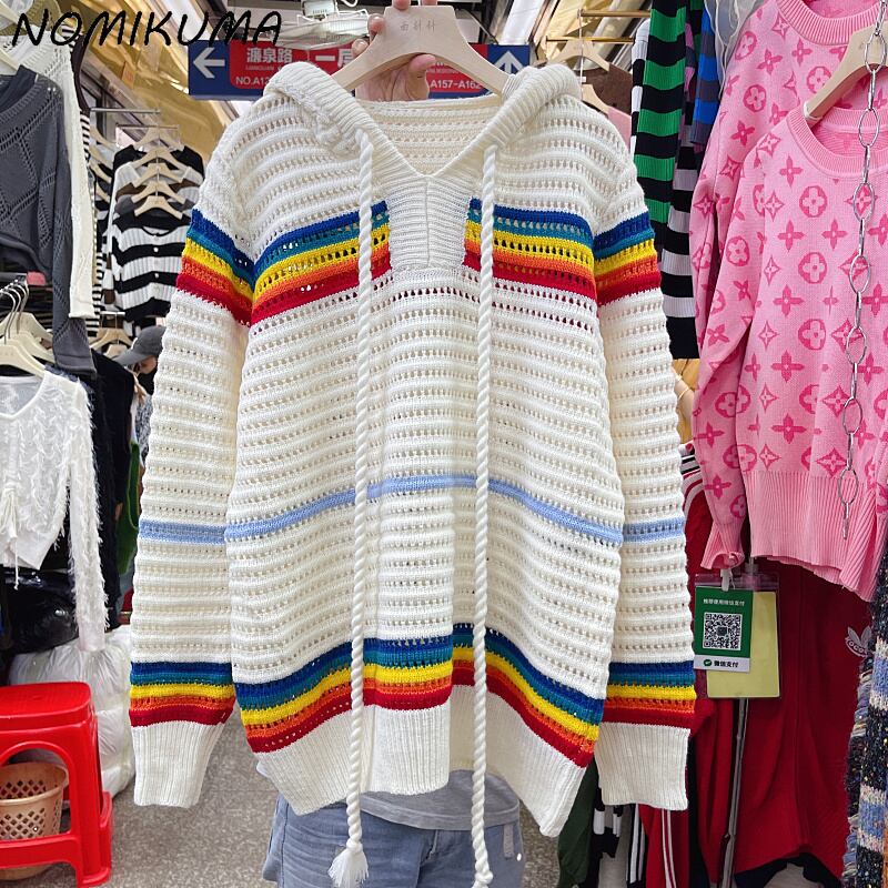 Nomikuma レインボーストライプフード付きニット女性 2022 秋長袖セーター因果中空アウトプルオーバートップス ロング オータム 秋物 kor87039799133