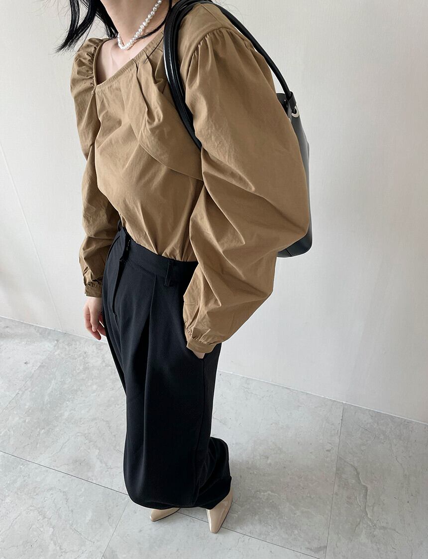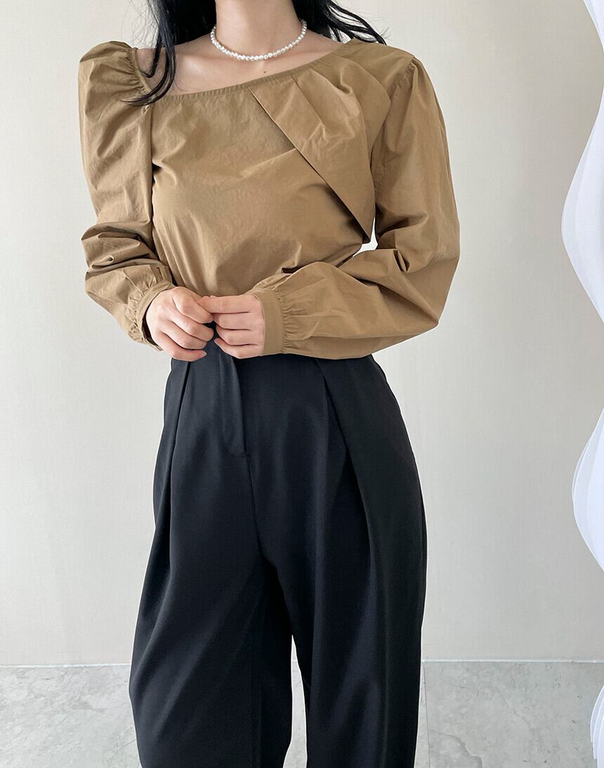 Nomikuma ひだ斜め襟ストラップレス女性ブラウストップスパフスリーブプルオーバー 2022 秋冬シャツ オータム 秋物 ウィンター 冬物 kor17672413206