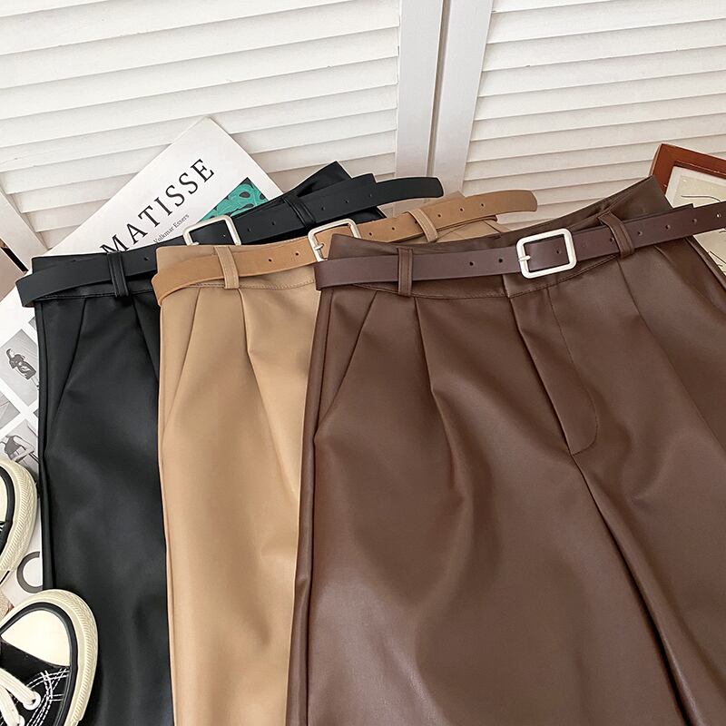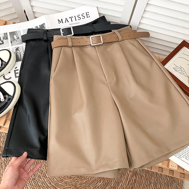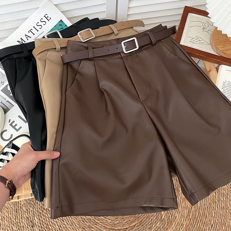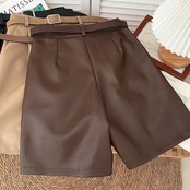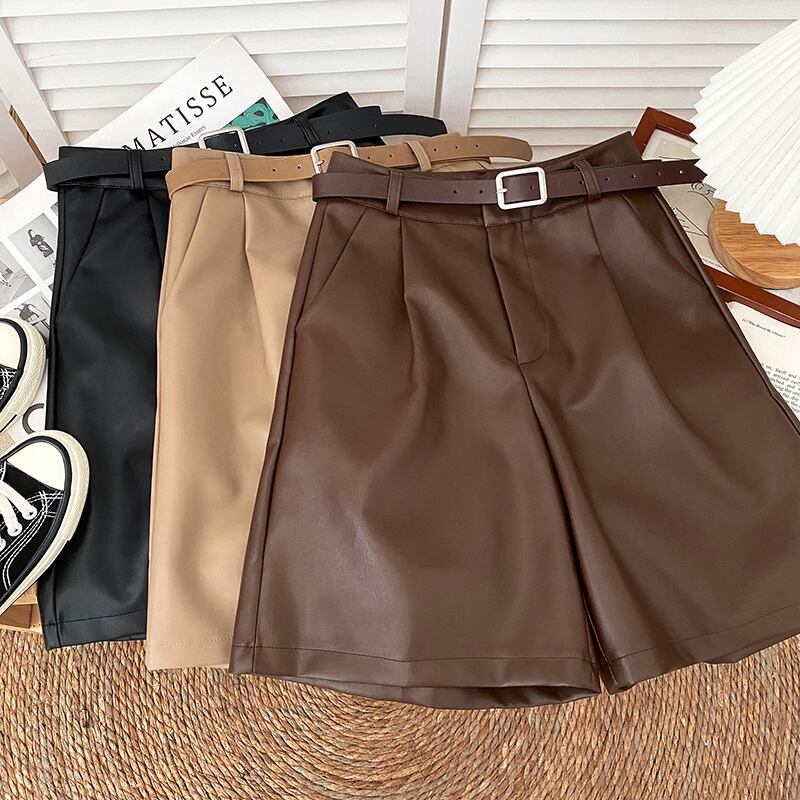 Nomikuma PU レザーショーツ女性ウエスト 2022 秋冬ボトムス因果無地ワイドレッグショート Feminima オータム 秋物 ウィンター 冬物 ブルマー ワイドパンツ ソリッドカラー kor68469639080