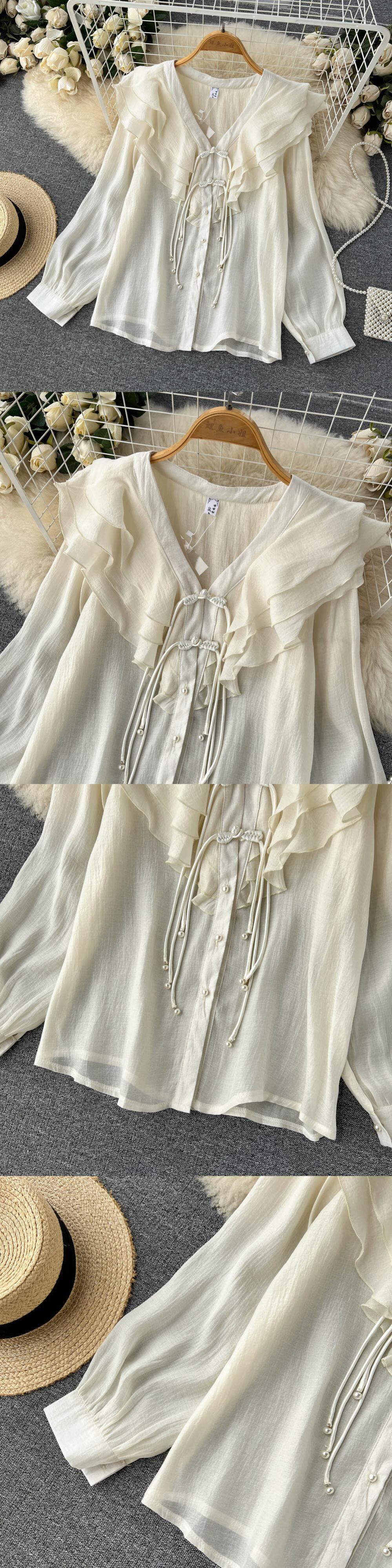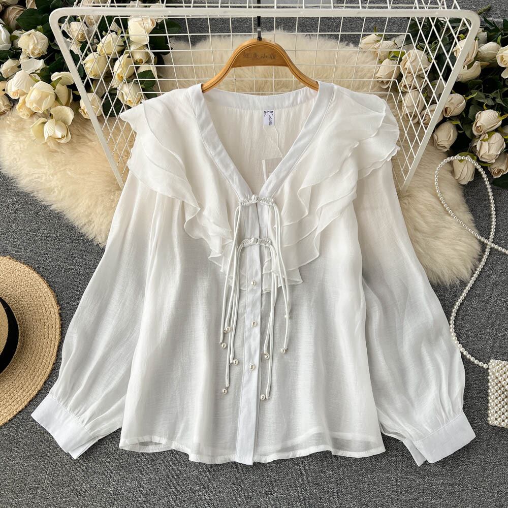 ノミクマフリル長袖ブラウストップスシングルブレストレディーストップス2022秋s es ロング オータム 秋物 kor76525894886