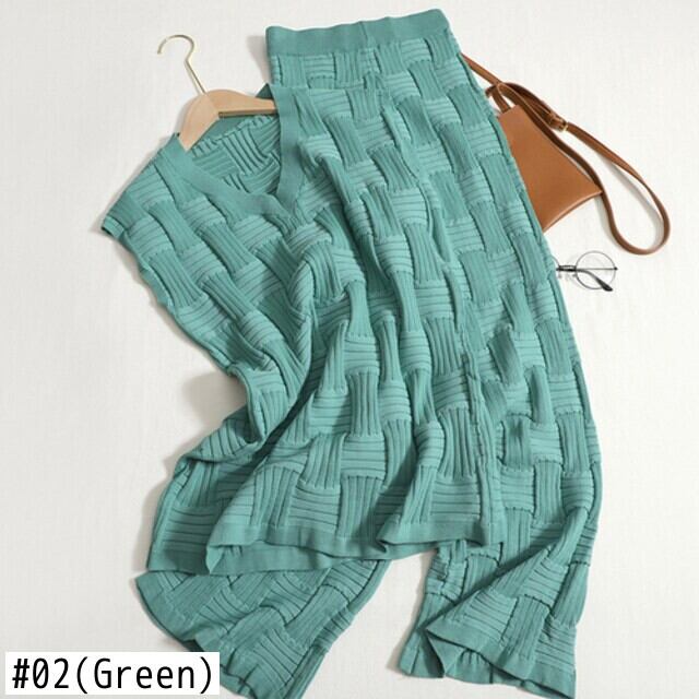 ノミクマセット ノースリーブVネックニット+ウエストワイドレッグロングパンツ 2022年 2点セット レディースコーデ ワイドパンツ kor89029681322