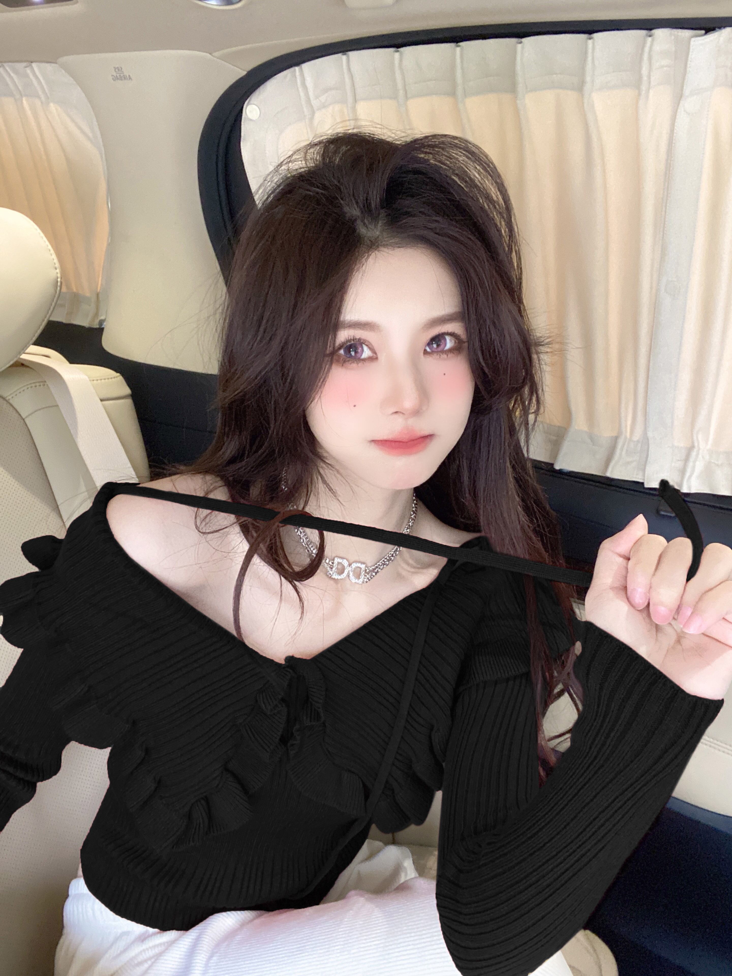 Nomikuma スウィートフリルピーターパン襟プルオーバーニット女性秋 Logn スリーブソリッドスリムベーシックニット Swetaers 2022 大人ガーリー キュート カジュアル オータム 秋物 ソリッドカラー kor72170137134