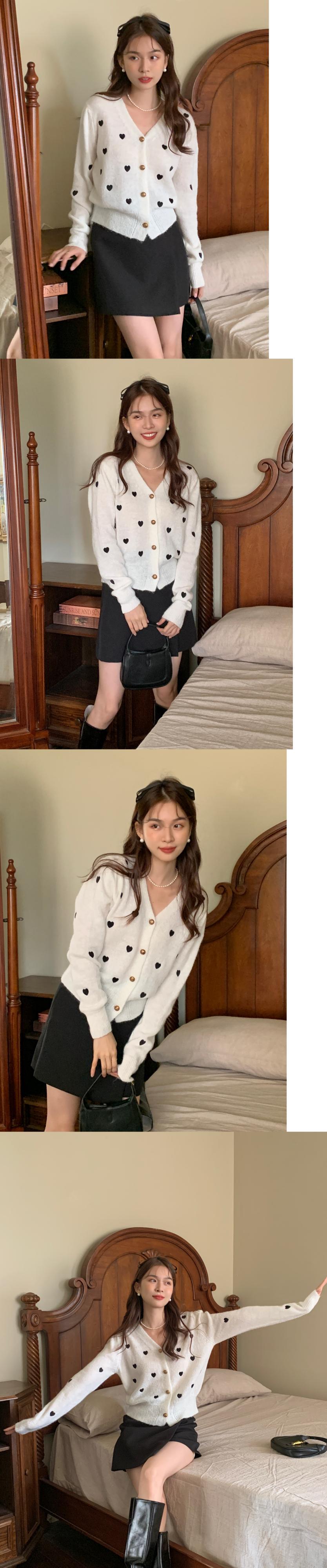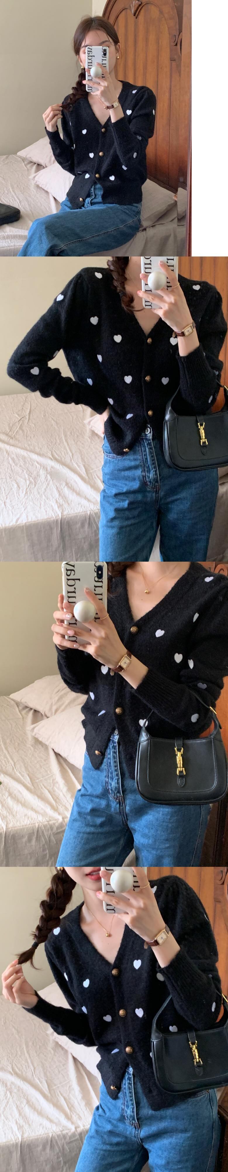 ノミクマ シック 秋冬 Vネック シングルブレスト ラブハート プリント 因果 長袖 ニット カーディガン レディース ロング オータム 秋物 ウィンター 冬物 kor6521994370