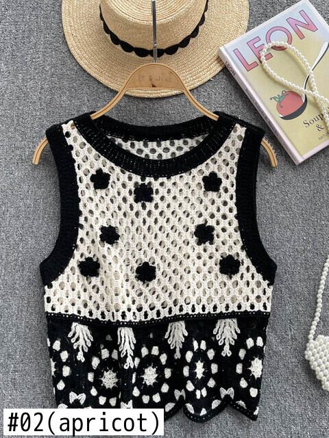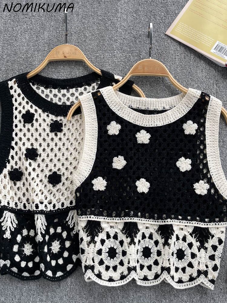 Nomikuma ヒットカラーフック中空アウトノースリーブベスト 2022 シックなレディーストップ因果甘いプルオーバーベスト服 大人ガーリー スウィート キュート カジュアル kor62269460630