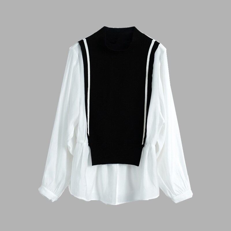 Nomikuma ヒットカラーブラウスパッチワークニット因果長袖 O ネックセーター 2022 秋の女性のセーター ロング オータム 秋物 Oネック kor38417356850