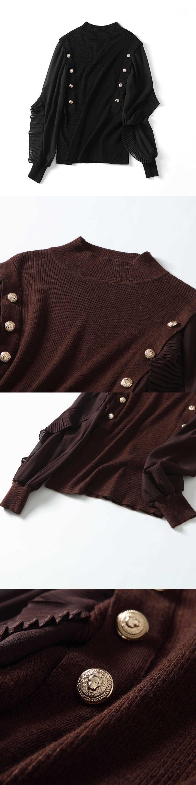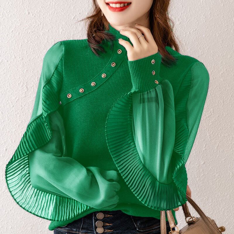 Nomikuma 女性 2022 秋冬ニットセーターシックなフリルランタンスリーブハーフカラーニットプルオーバー オータム 秋物 ウィンター 冬物 kor42691045343