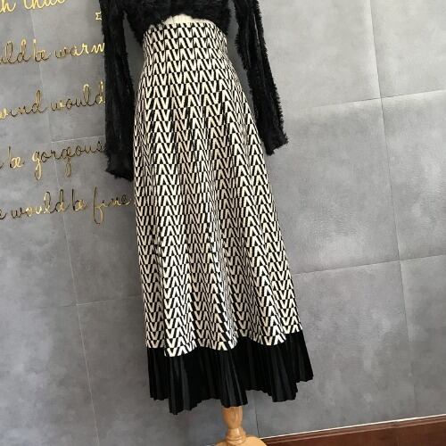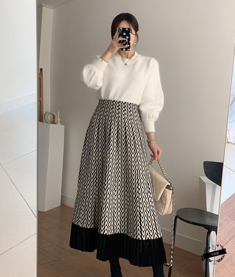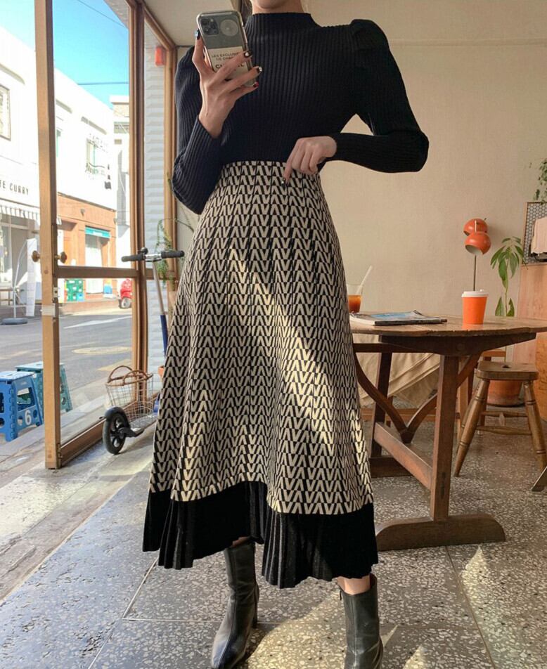 Nomikuma ウエスト パッチワーク ニット プリーツ Skrits レディース 秋冬 ヒットカラー セーター スカート オータム 秋物 ウィンター 冬物 kor82353199777