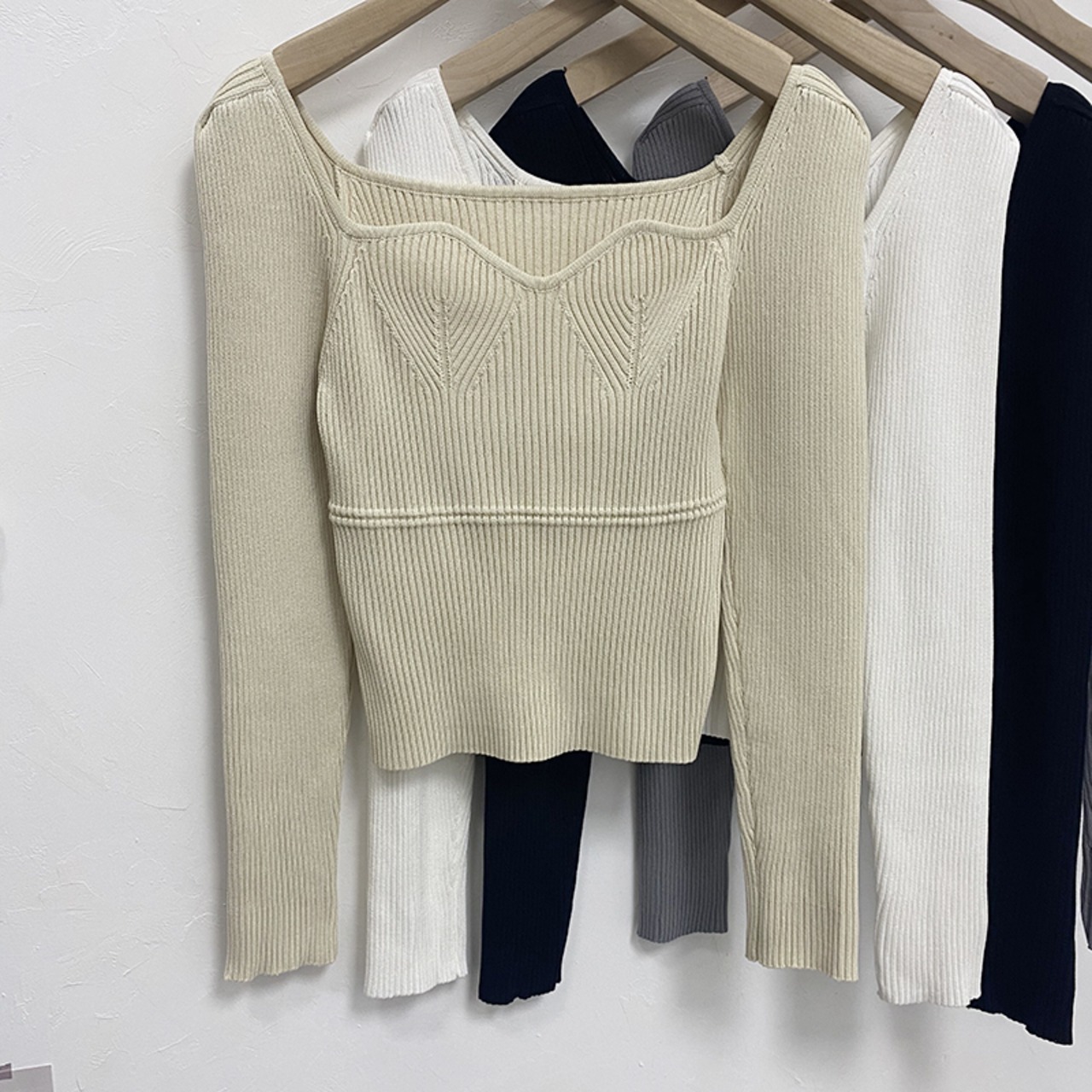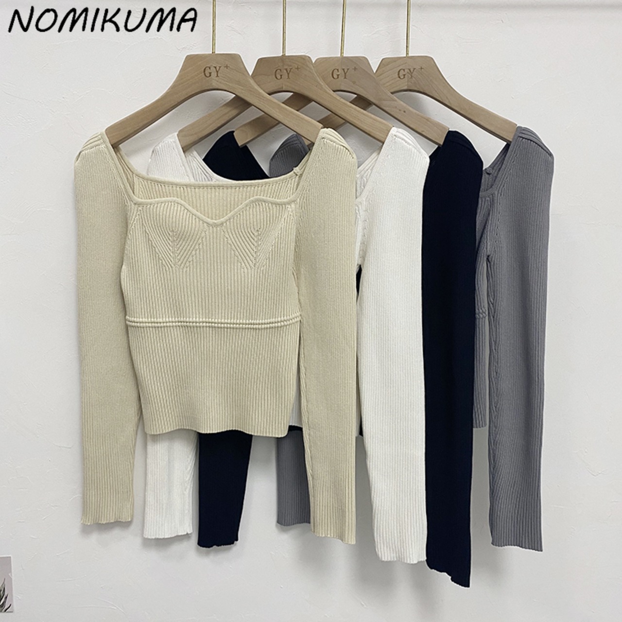 ノミクマ セーター インヴィエルノ 2022秋冬 スクエアカラー 長袖 ニット スリム ショート ニット セーター ロング オータム 秋物 ウィンター 冬物 スクウェア kor98426530611