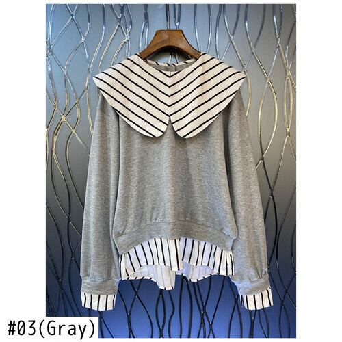 Nomikuma ストライプピーターパン襟偽二枚スウェット女性 2022 秋冬パーカー因果長袖プルオーバージャンパー ロング シャツ オータム 秋物 ウィンター 冬物 kor25302554043