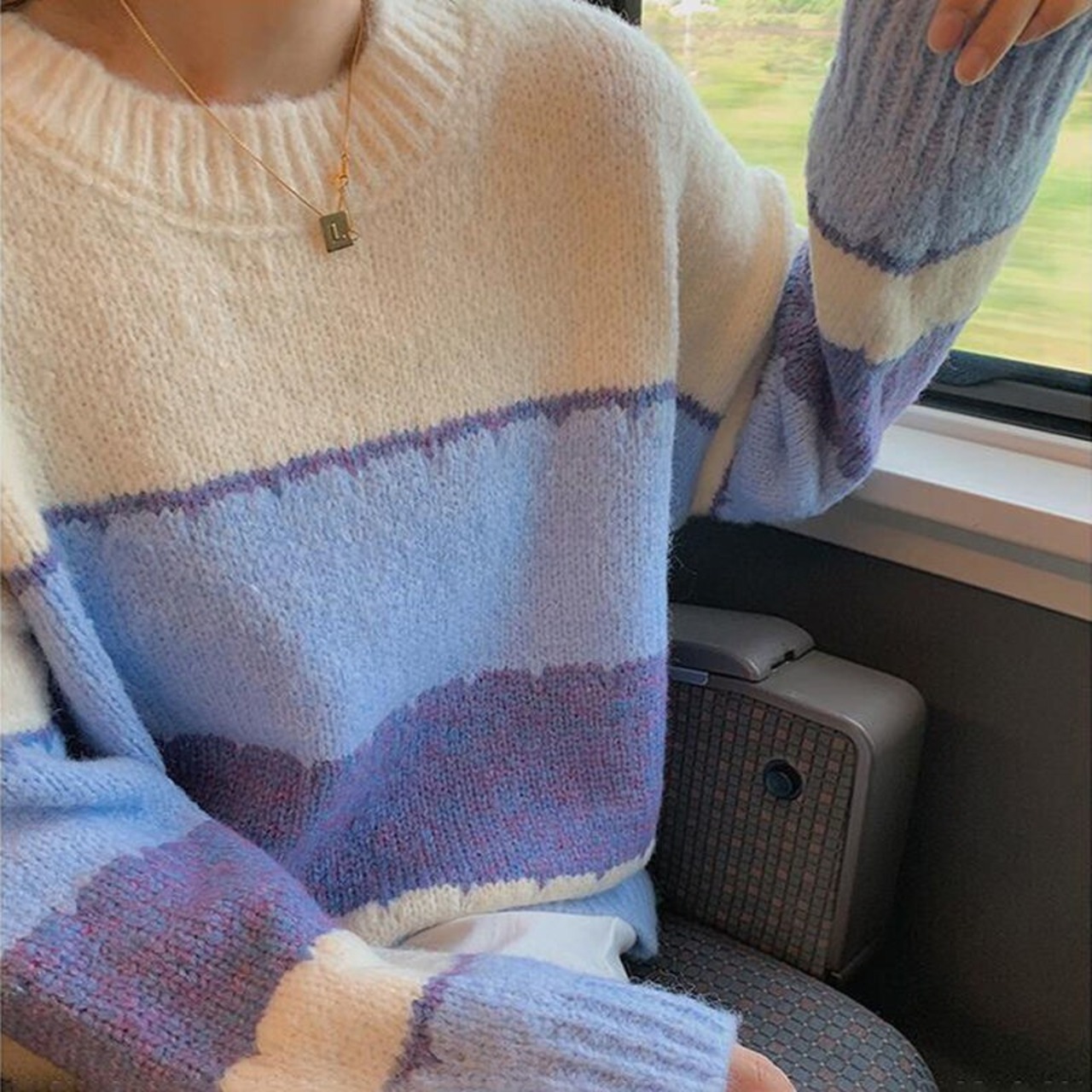 Nomikuma プルコントラストカラーストライプセーター女性 2022 Auutmn 冬ロング Slevee O ネックプルオーバーニットプルオーバー ウィンター 冬物 Oネック kor27623263467