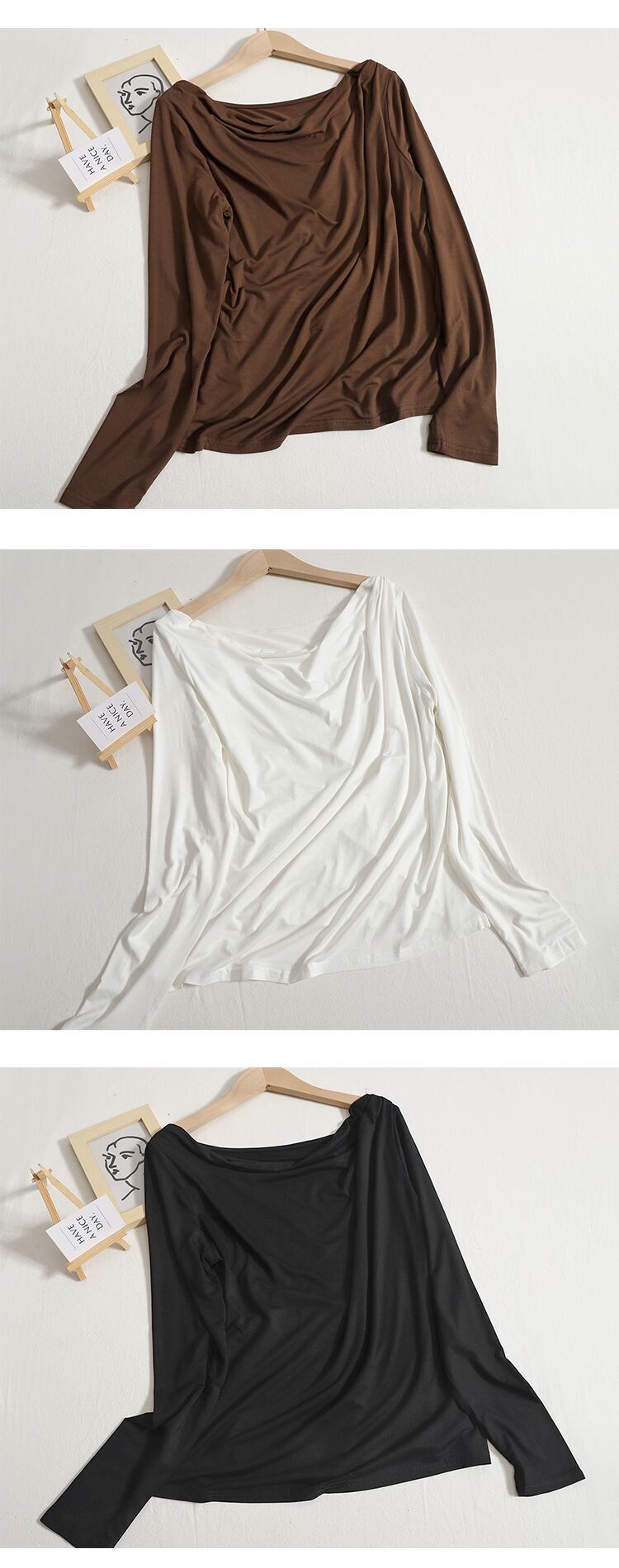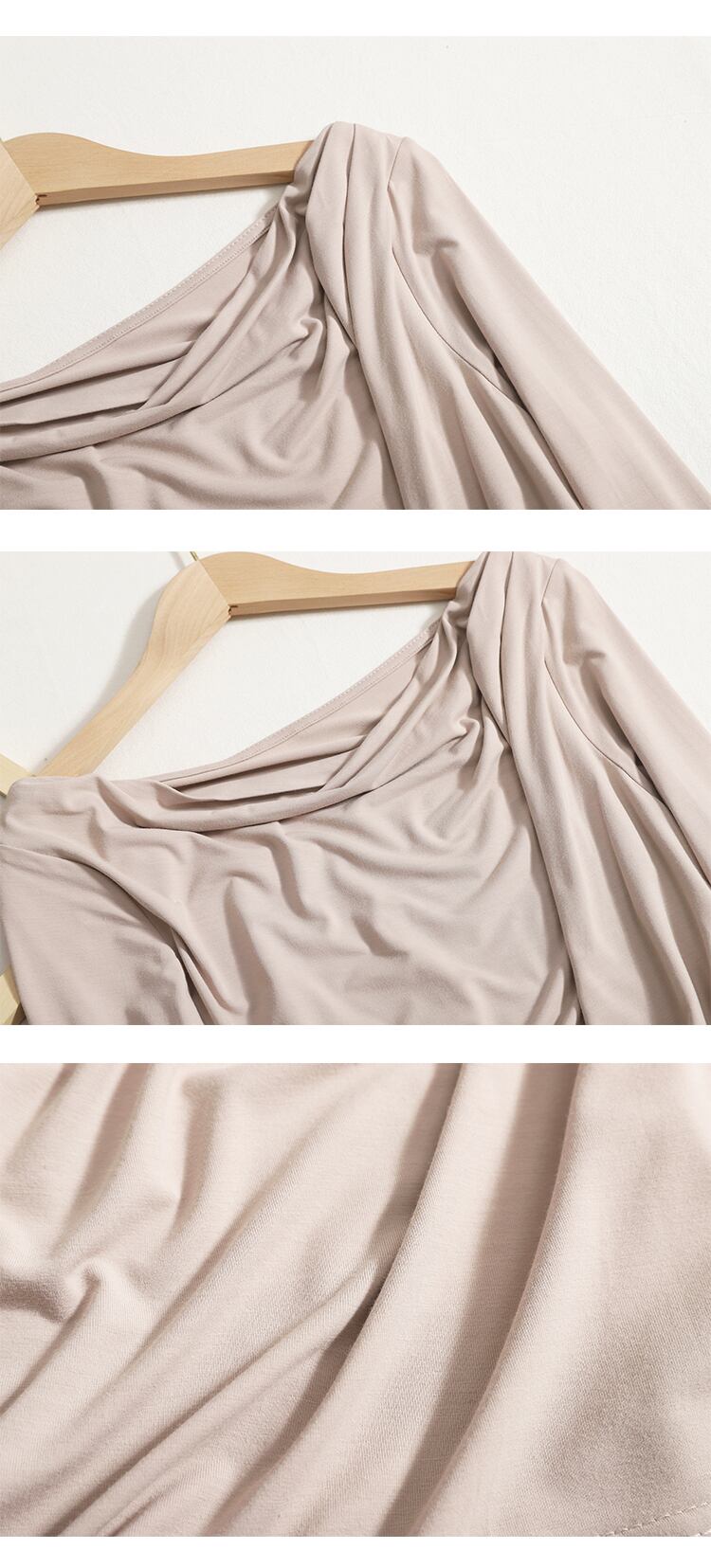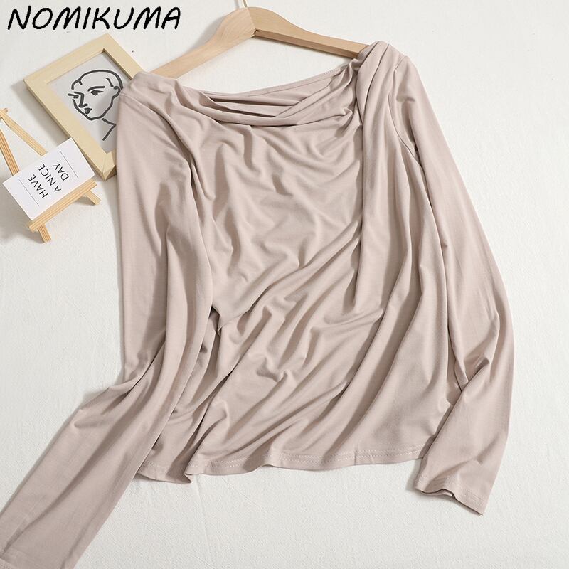 Nomikuma オフショルダー女性 Tシャツ 2022 秋長袖ベーシックグラフィック Tシャツソリッド Tシャツトップス ロング オータム 秋物 ソリッドカラー kor35040897442