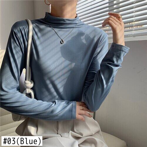 ノミクマハーフタートルネックスリムベーシック長袖Tシャツ女性2022秋冬無地グラフィックTシャツ ロング オータム 秋物 ウィンター 冬物 ソリッドカラー kor36765470553