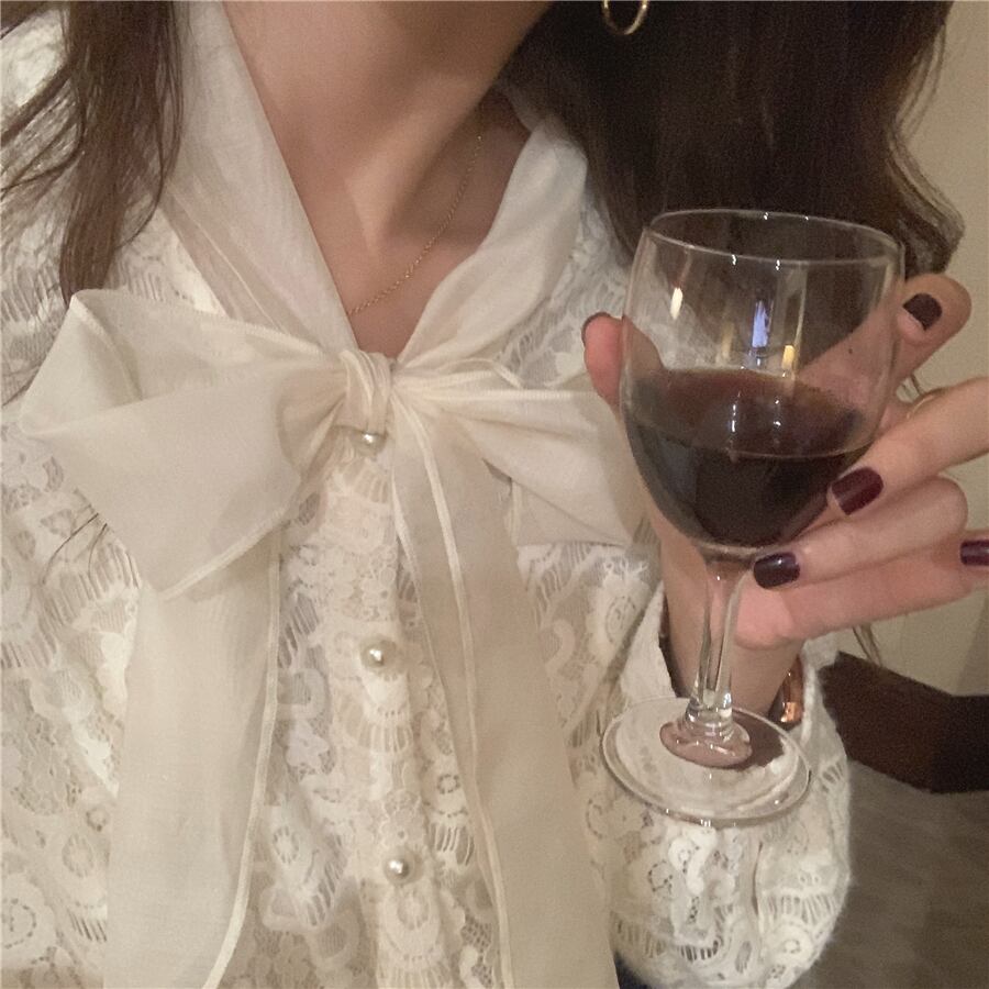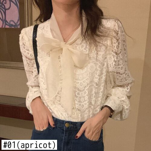 Nomikuma シックな弓包帯レースフック長袖ブラウストップス女性 2022 秋シャツスタイルトップス ロング リボン オータム 秋物 kor97876657066
