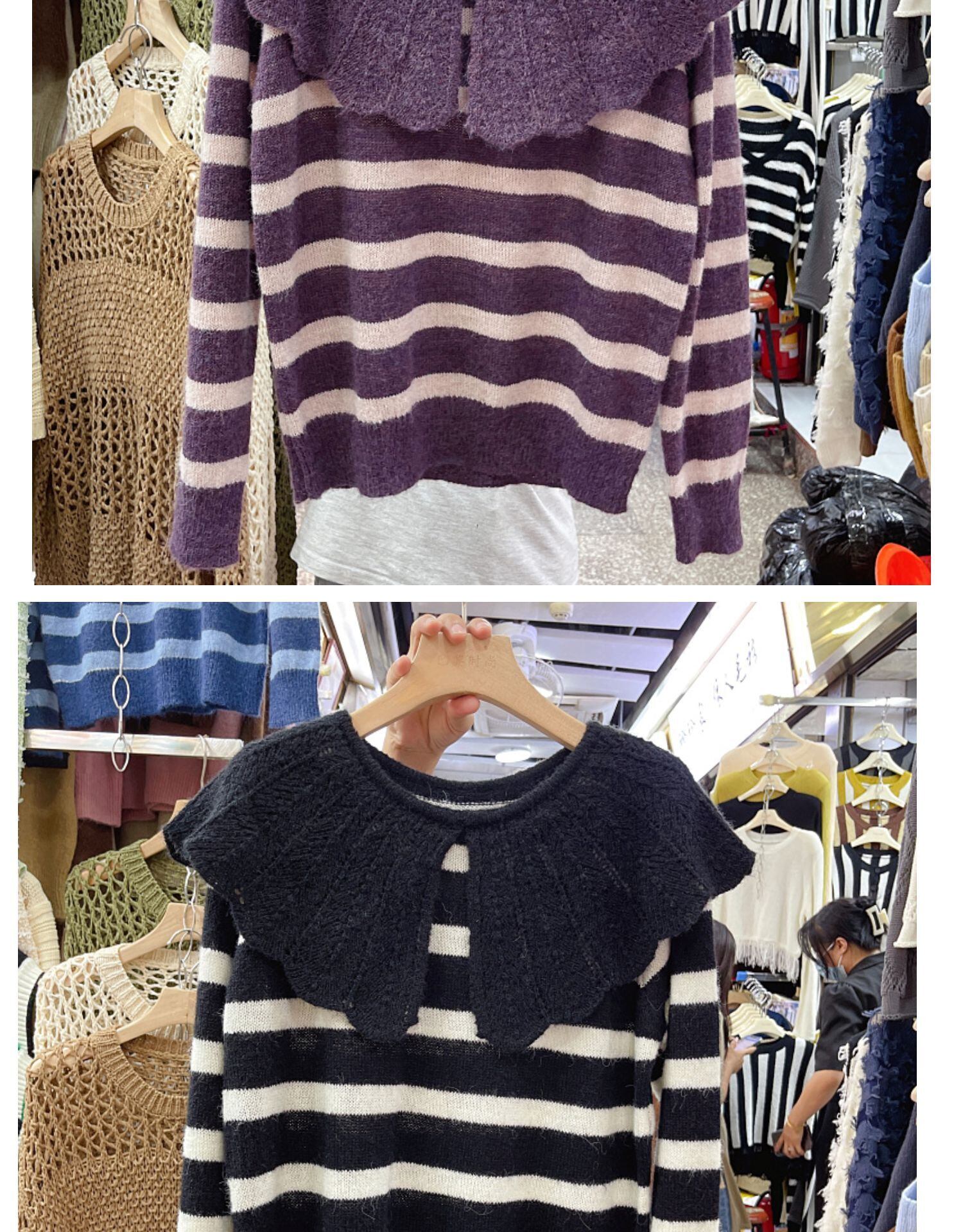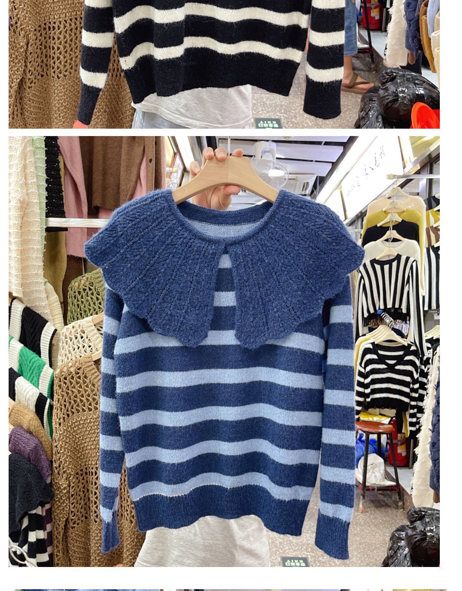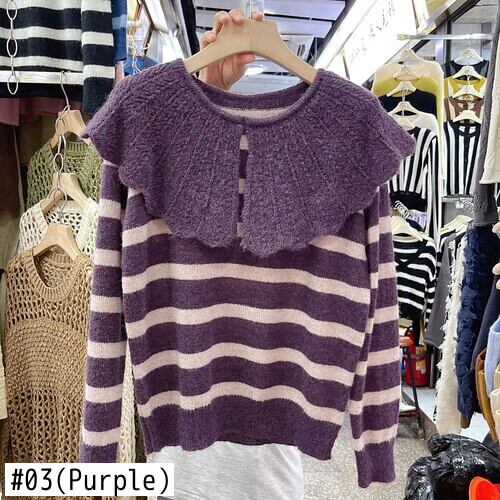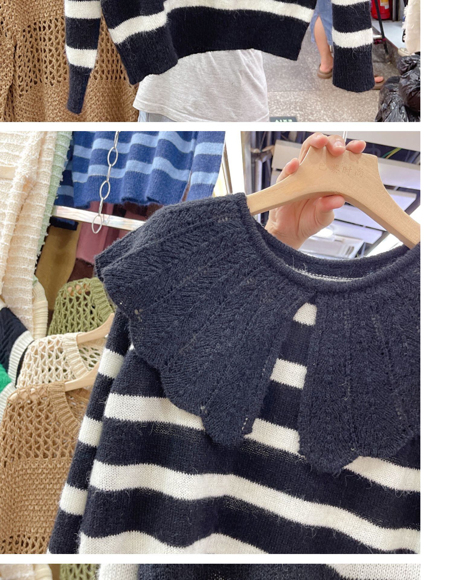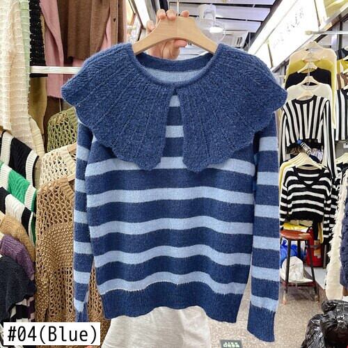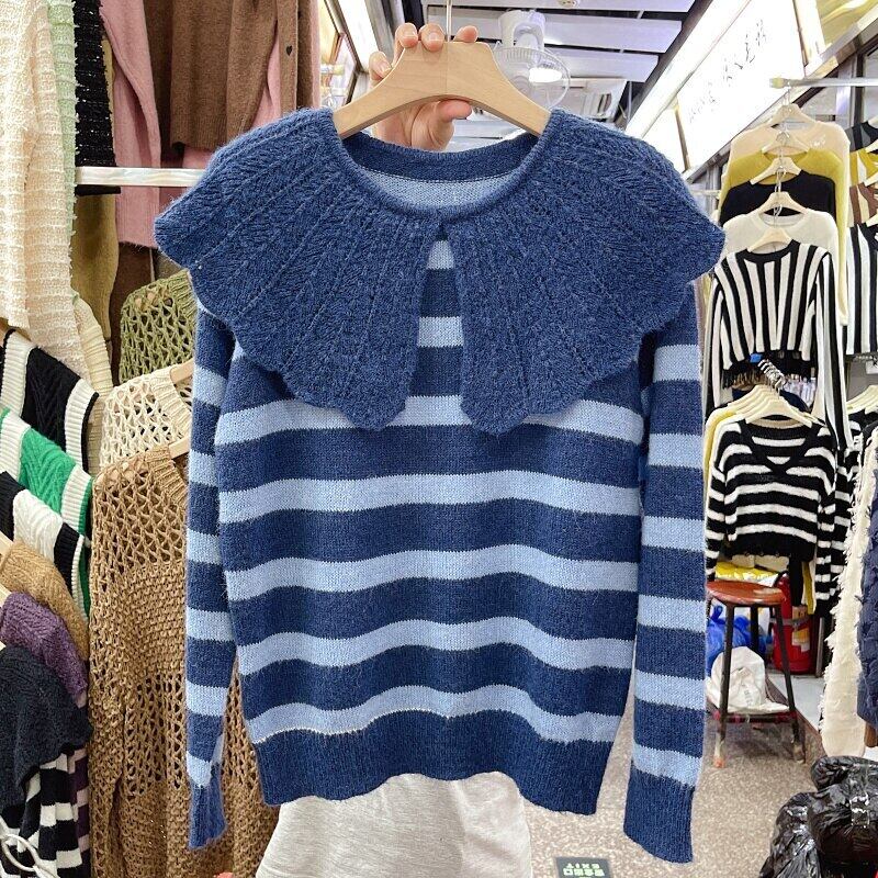 Nomikuma 2022 ピーターパン襟ニット女性秋ストライプセーター因果長袖プルオーバープル ロング オータム 秋物 kor83290434579