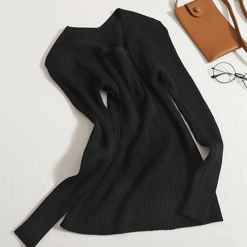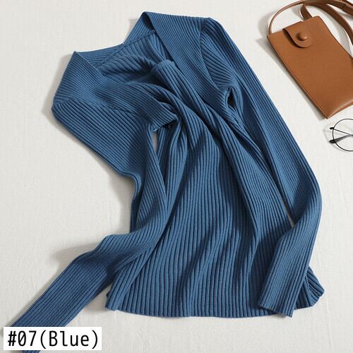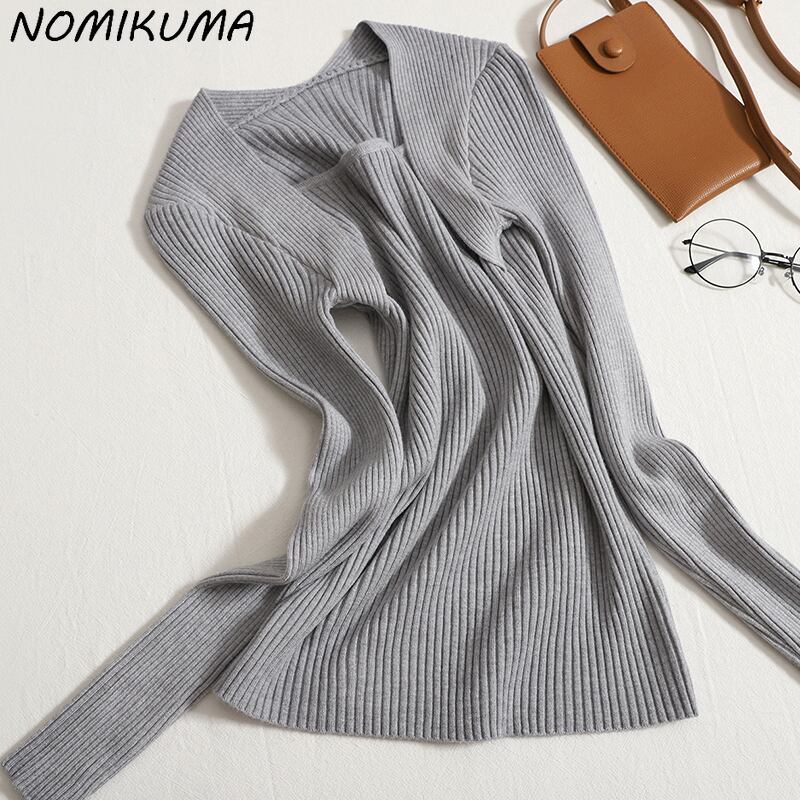 Nomikuma 無地スリムニット女性 2022 秋のスクエアカラーフェイク二枚長袖プルオーバーニットセーター ロング オータム 秋物 ソリッドカラー スクウェア kor41784426434