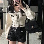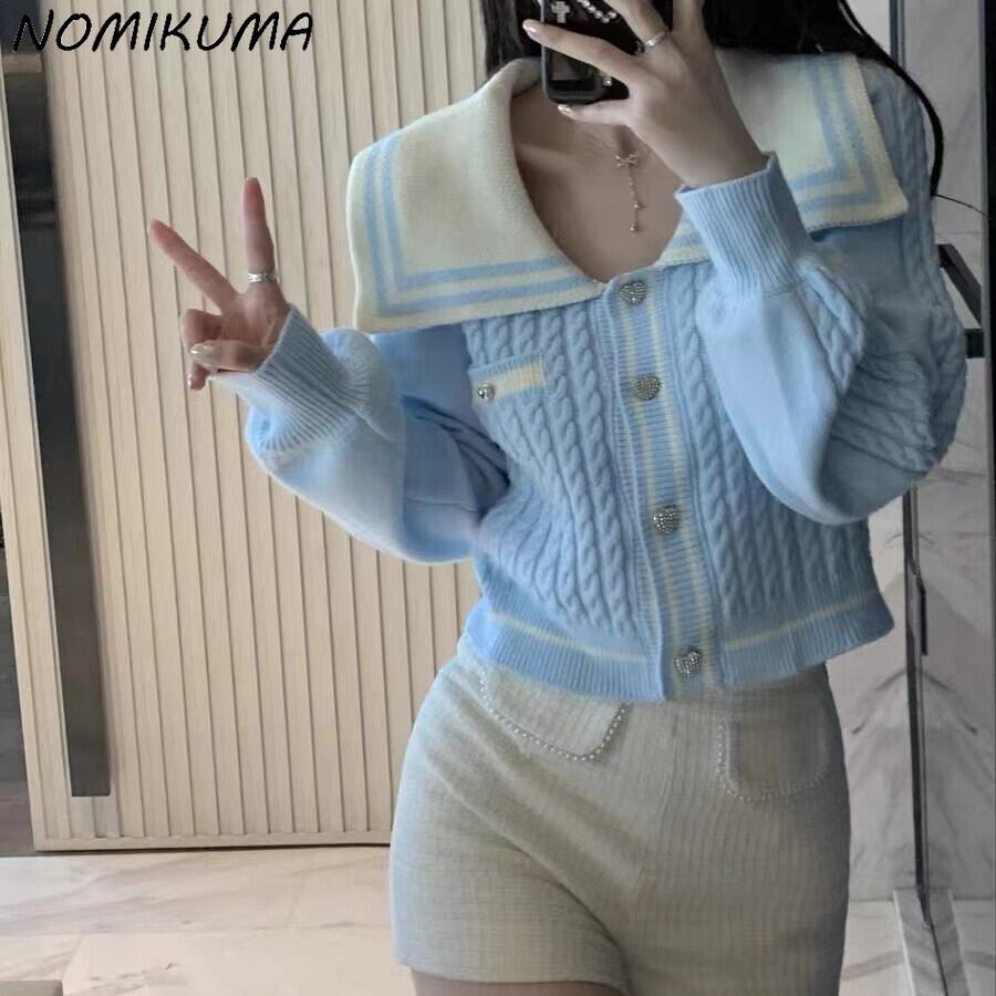 Nomikumaセーラー衿ニットカーディガンコート秋冬シックショートニット2022スウィートスリムショートセーターカーディガン 大人ガーリー キュート カジュアル オータム 秋物 ウィンター 冬物 kor5403879724