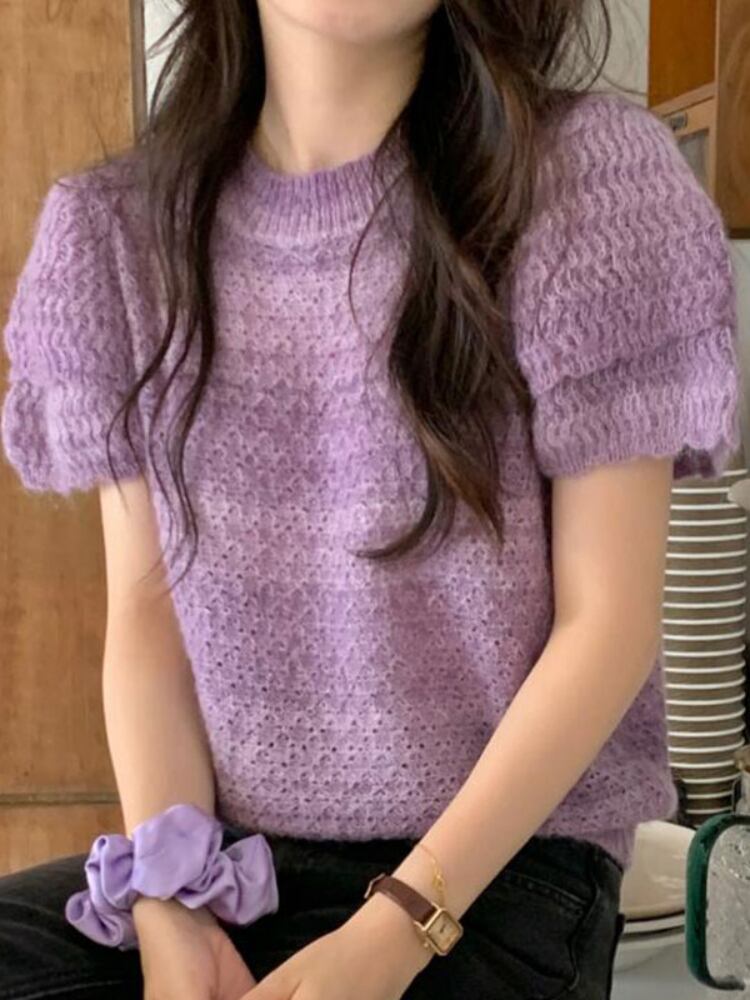 ノミクマ 秋 Oネック ヒットカラー ストライプ ニット 半袖 Oネック プルオーバー カジュアル 2022年 ニットセーター ショート ハーフスリーブ オータム 秋物 kor42166829325