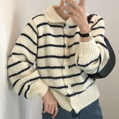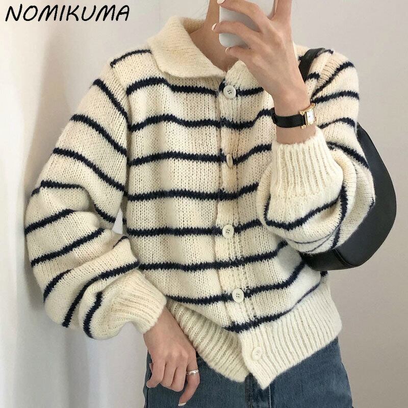 Nomikuma 秋冬ヒットカラーストライプセーターコート因果長袖ターンダウン襟 2022 女性ニットカーディガン ロング オータム 秋物 ウィンター 冬物 kor6903979705