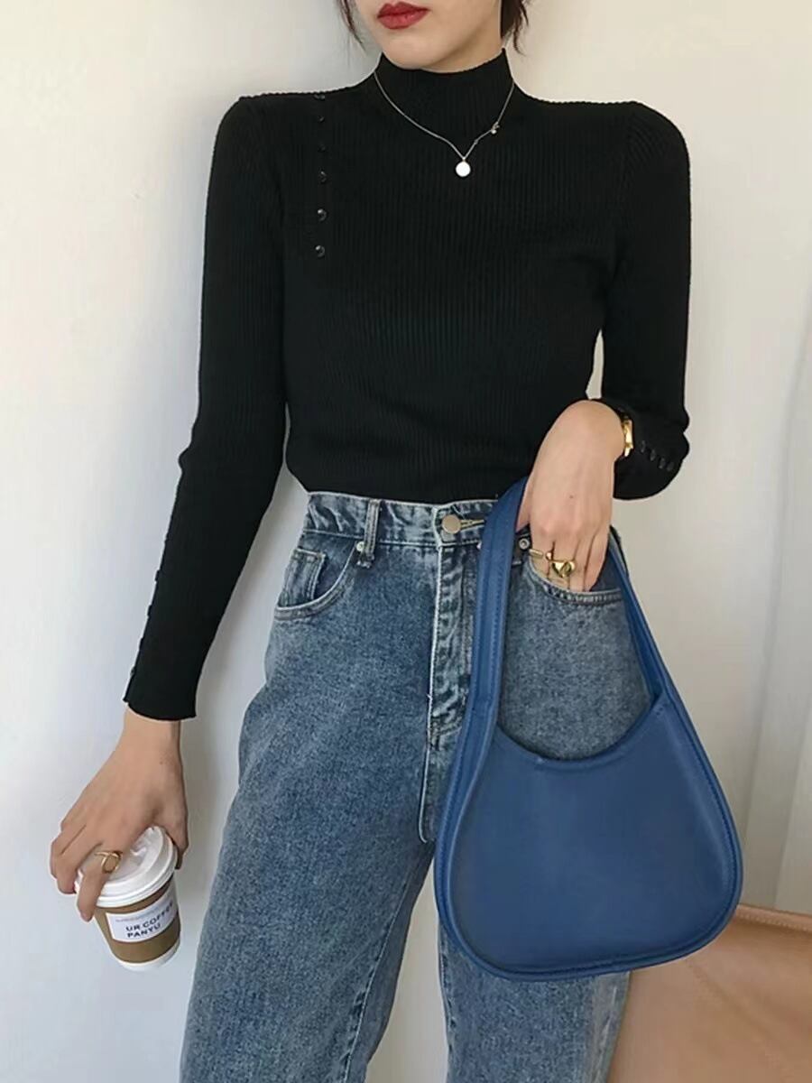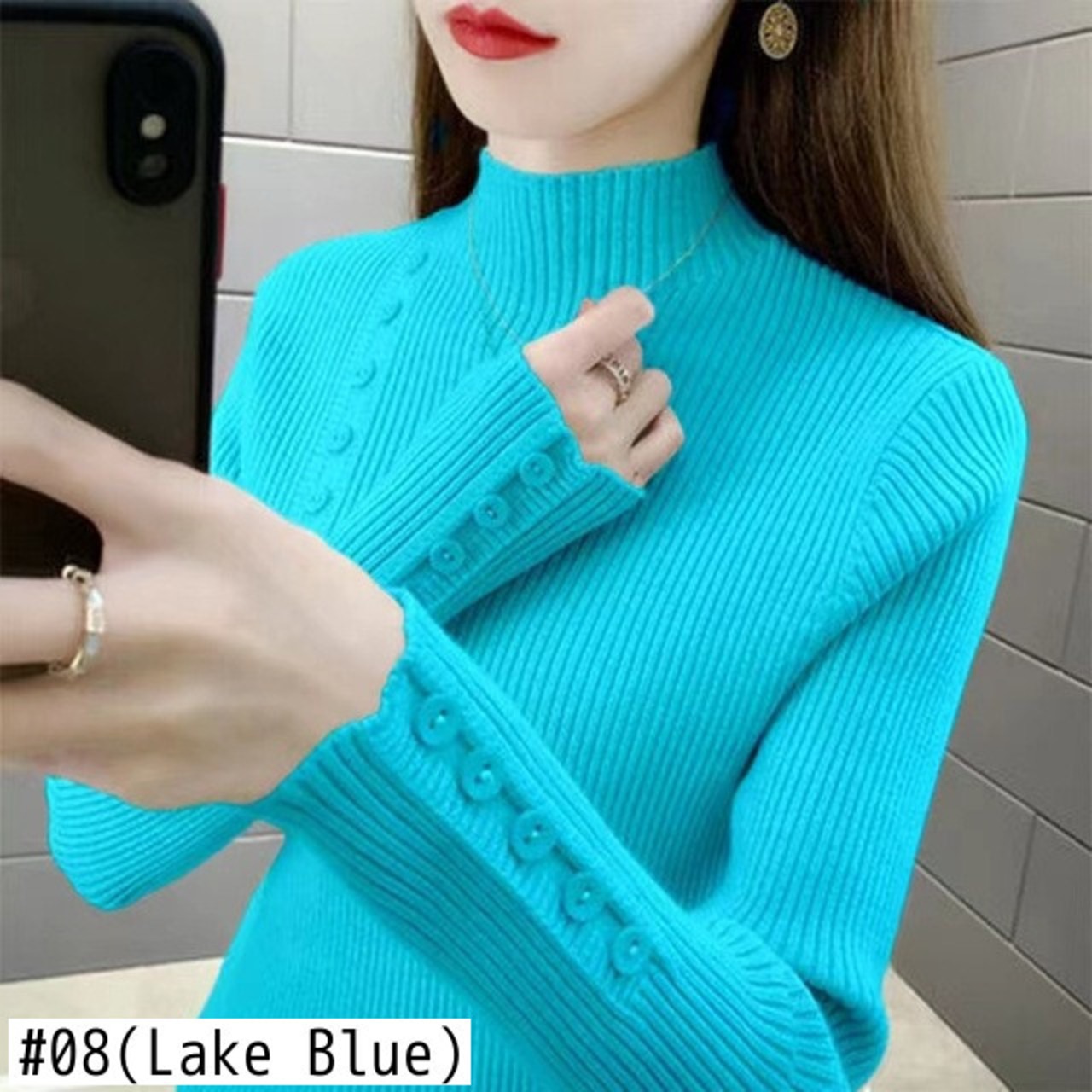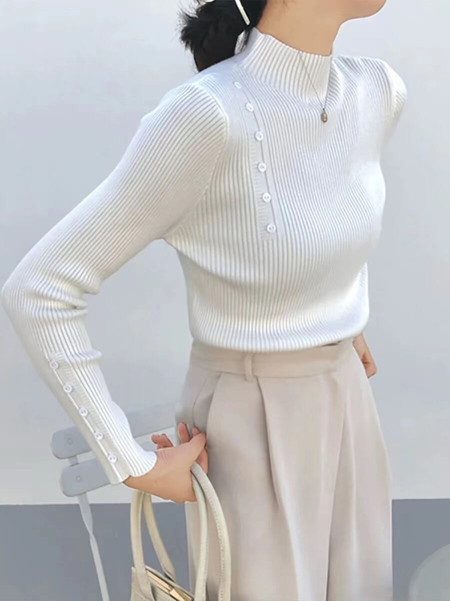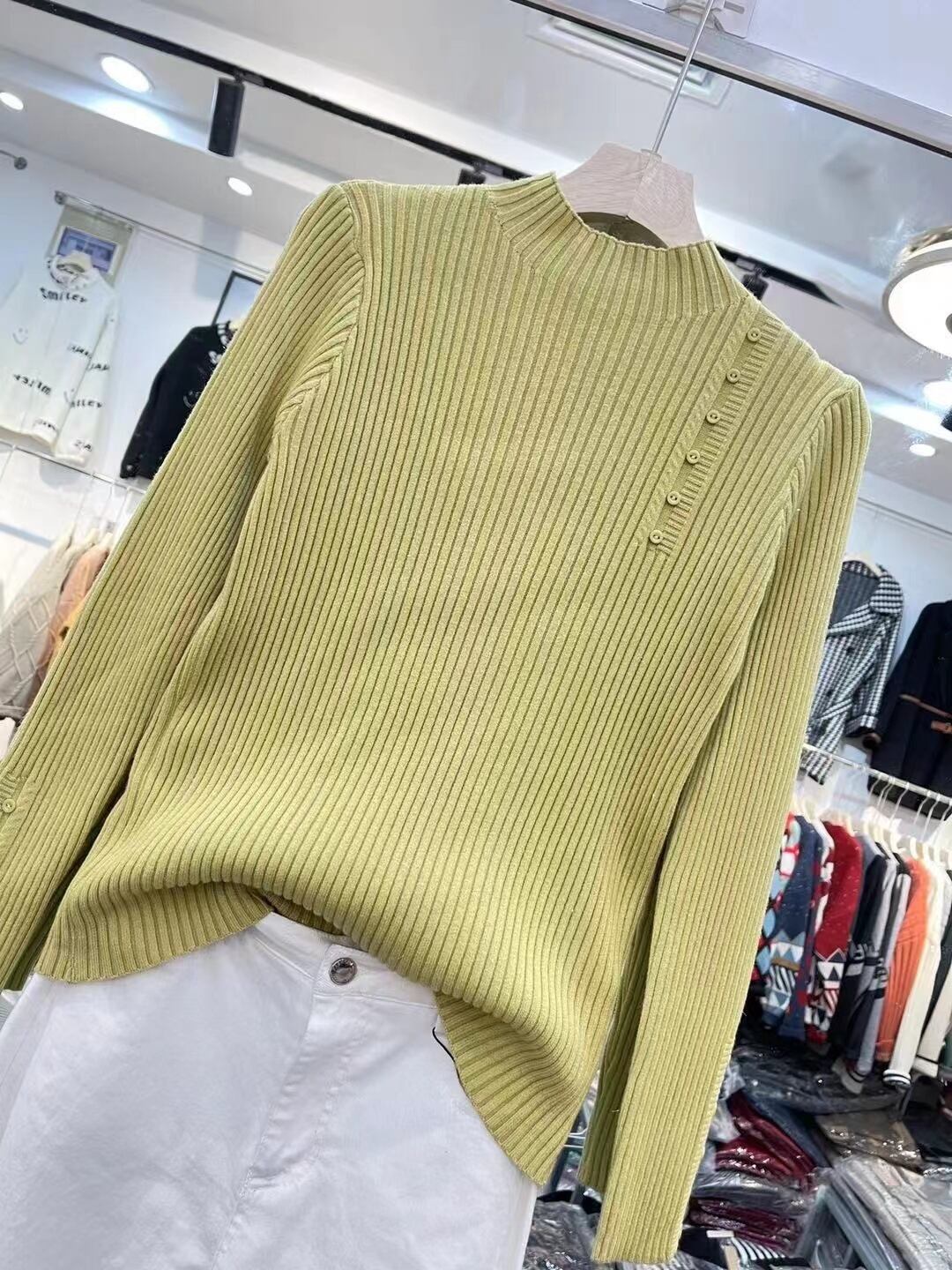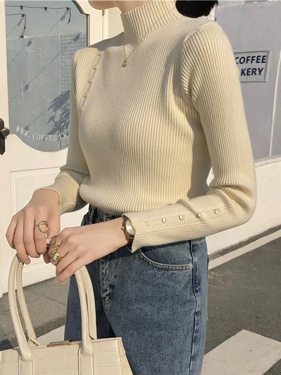 Nomikuma 半襟ボタンセーター女性秋冬 2022 ベーシックニット長袖ニットトップ ロング オータム 秋物 ウィンター 冬物 kor44705194483