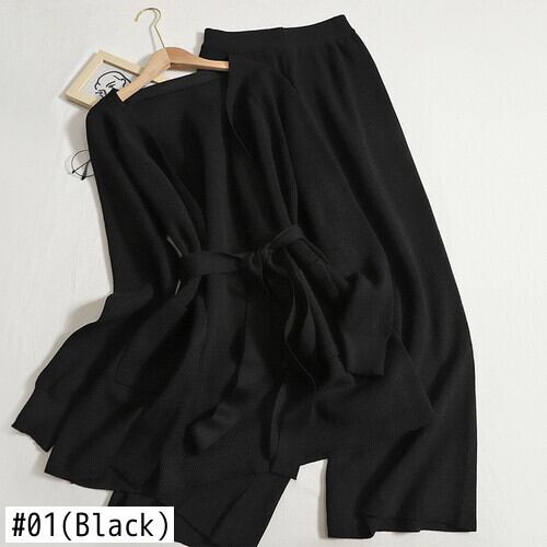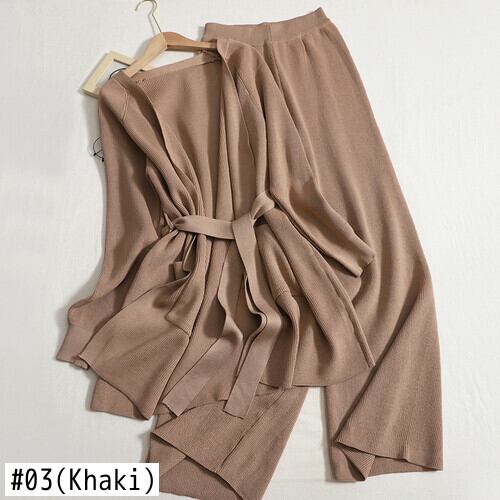 Nomikuma ツーピース衣装 2022 レースアップニットカーディガンコート + ウエストワイドレッグロングセーターパンツ女性セット ワイドパンツ kor95448468259