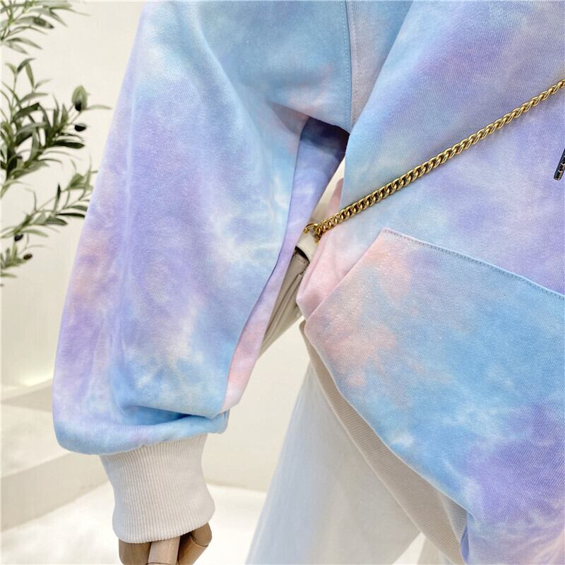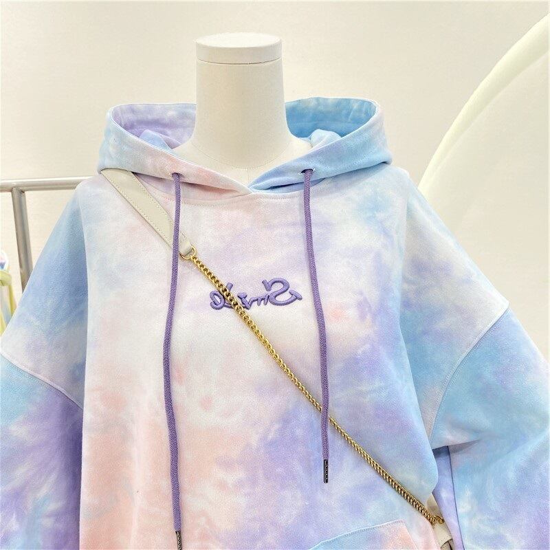 Nomikuma 絞り染めプリントフード付きスウェットシャツ因果長袖 2022 秋の女性ジャンパーパーカートップ ロング オータム 秋物 kor97316306151