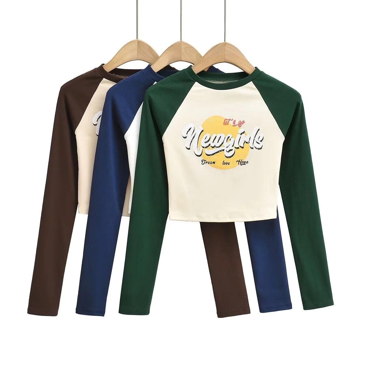 Nomikuma 2022 セクシーなスリム Crop Tos 文字プリントコントラストカラー長袖グラフィック Tシャツ 2022 秋の女性 Tシャツ ロング オータム 秋物 kor14830106339