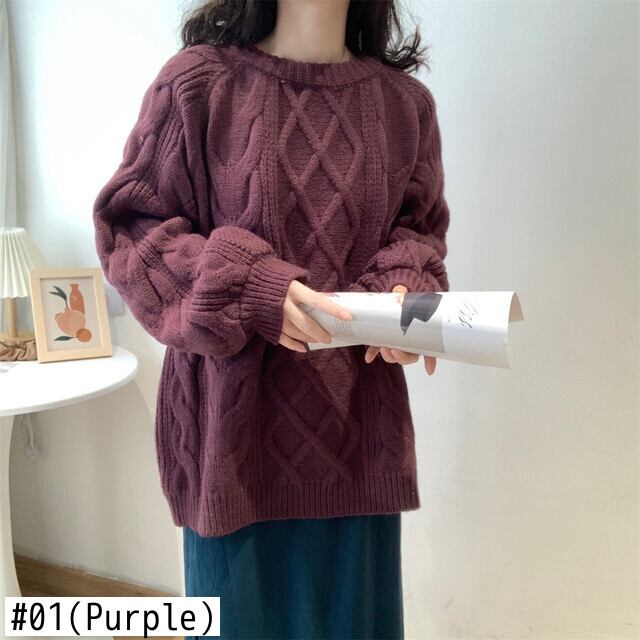 ノミクマ 秋冬 プルオーバー ツイストセーター カジュアル 長袖 Oネック ニット トップス 2022 プルジャンパー ロング オータム 秋物 ウィンター 冬物 kor80827380182