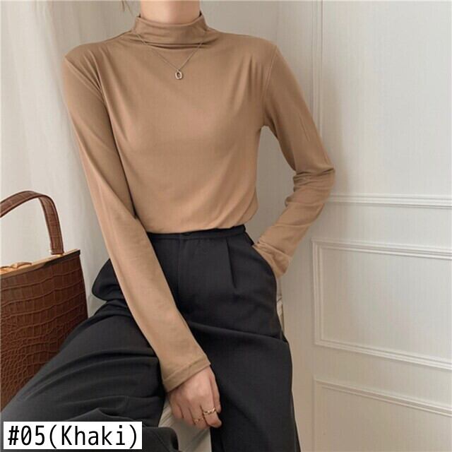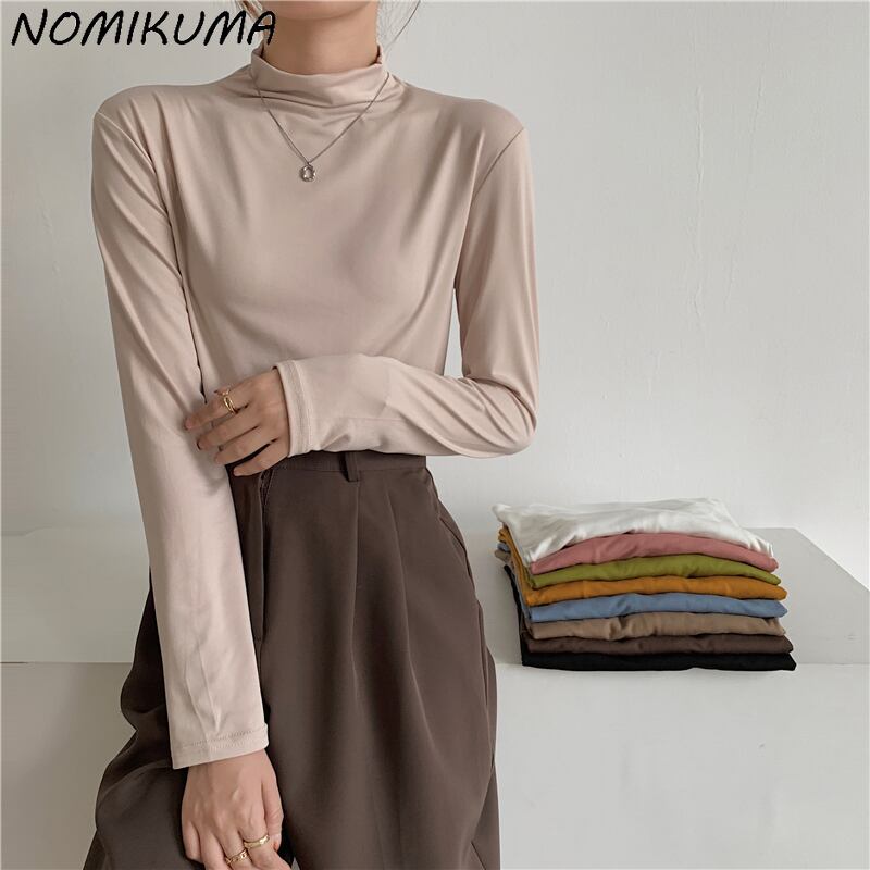 ノミクマハーフタートルネックスリムベーシック長袖Tシャツ女性2022秋冬無地グラフィックTシャツ ロング オータム 秋物 ウィンター 冬物 ソリッドカラー kor23834064908