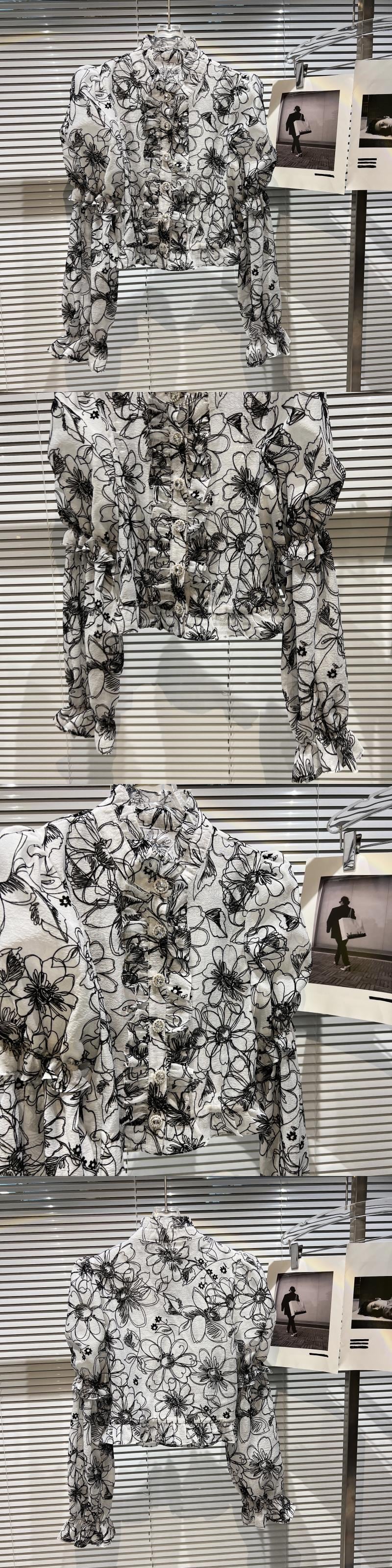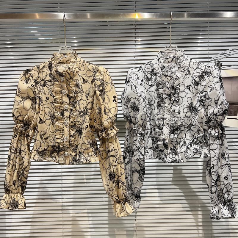 Nomikuma De Moda 2022 秋 花柄 ショートブラウス レディース パフスリーブ スタンドネック オータム 秋物 kor22666238425