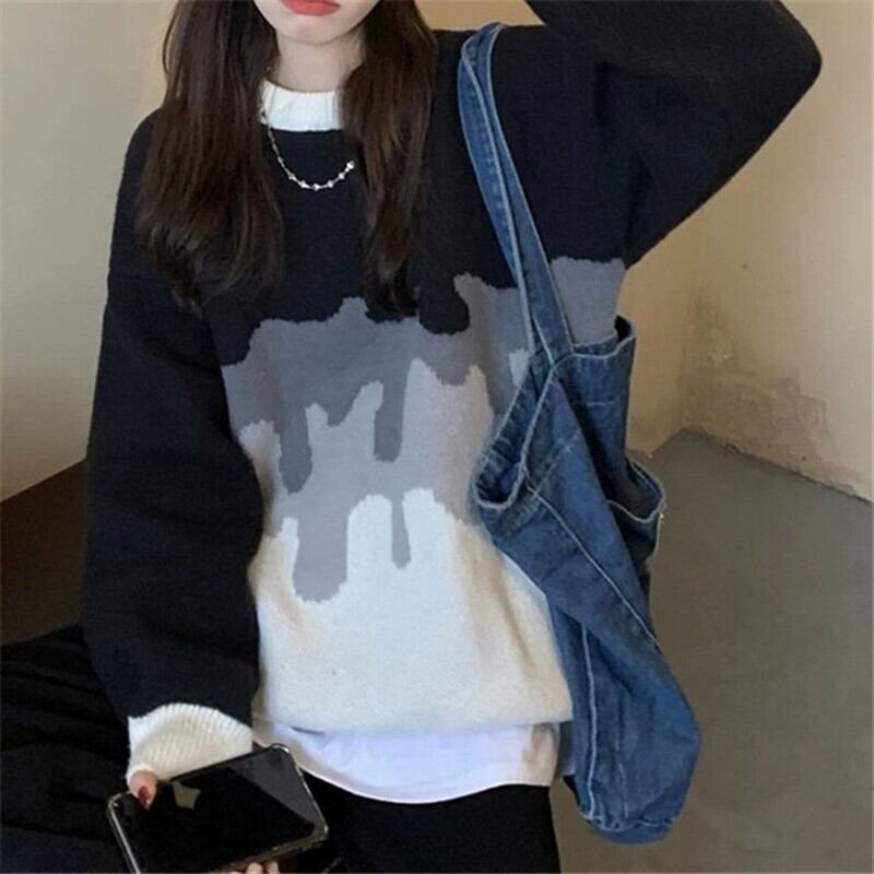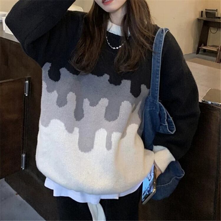 Nomikuma コントラストカラーセーター女性 2022 秋冬因果長袖 O ネックニットジャンパー Fahsion プルトップス ロング オータム 秋物 ウィンター 冬物 Oネック kor97406044096