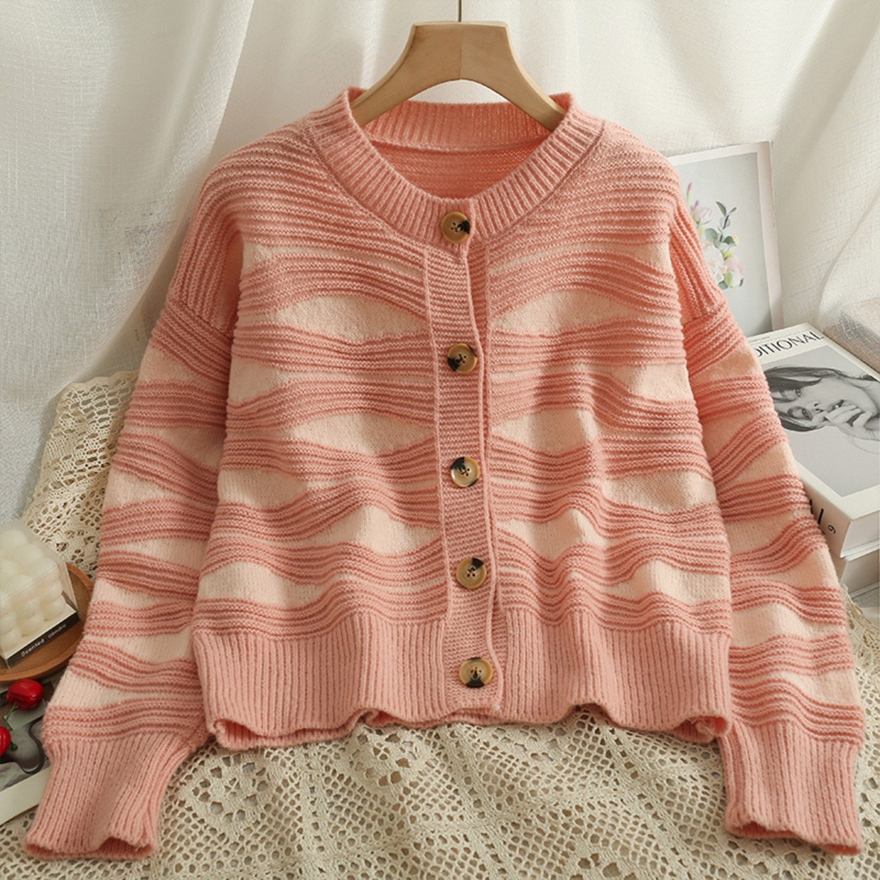 Nomikuma 因果ヒットカラーストライプカーディガンセーター女性 2022 秋長袖 O ネックニットスウィートニットコート ロング 大人ガーリー キュート カジュアル オータム 秋物 Oネック kor10297786190
