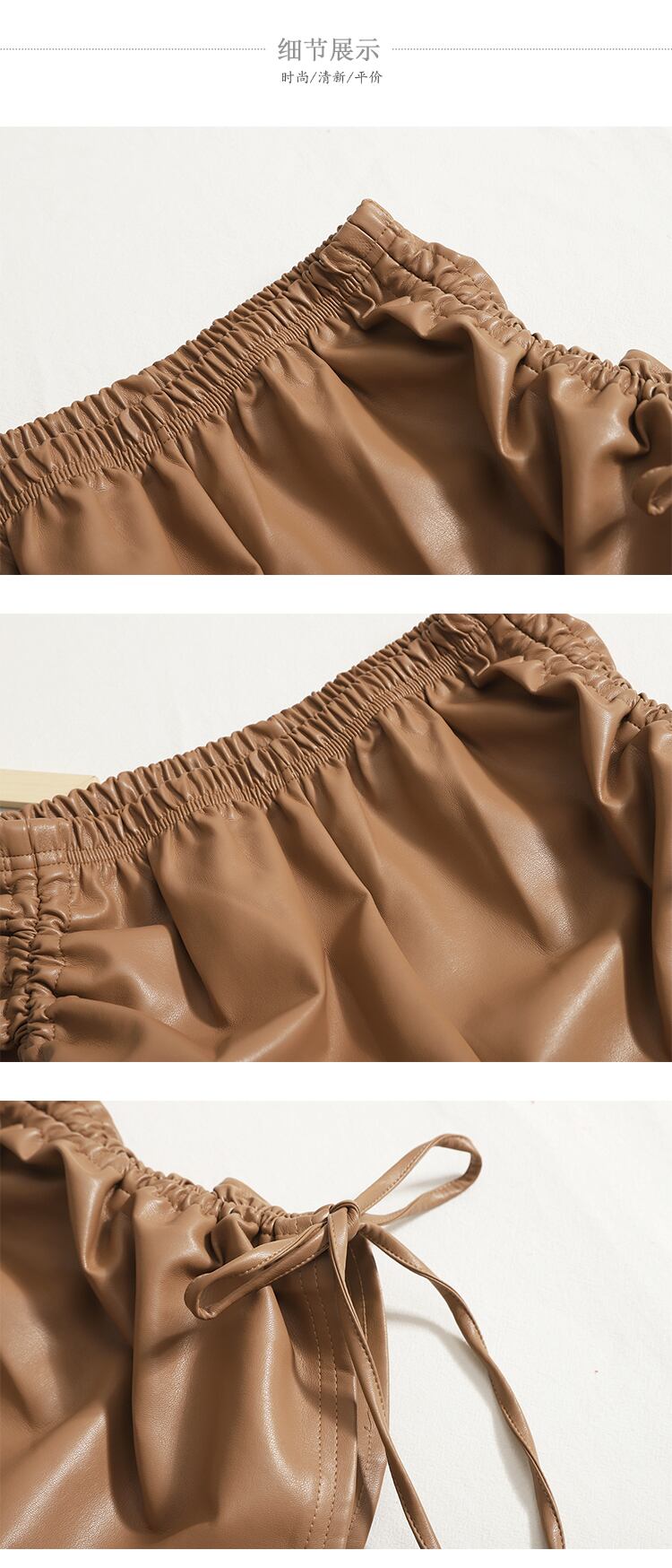 ノミクマ PU レザー ショーツ レディース ウエストゴム 2022年 秋 ボトムス 因果シャーリング ワイドレッグ ショートパンツ エラスティック 伸縮 オータム 秋物 ブルマー ワイドパンツ kor2544682153