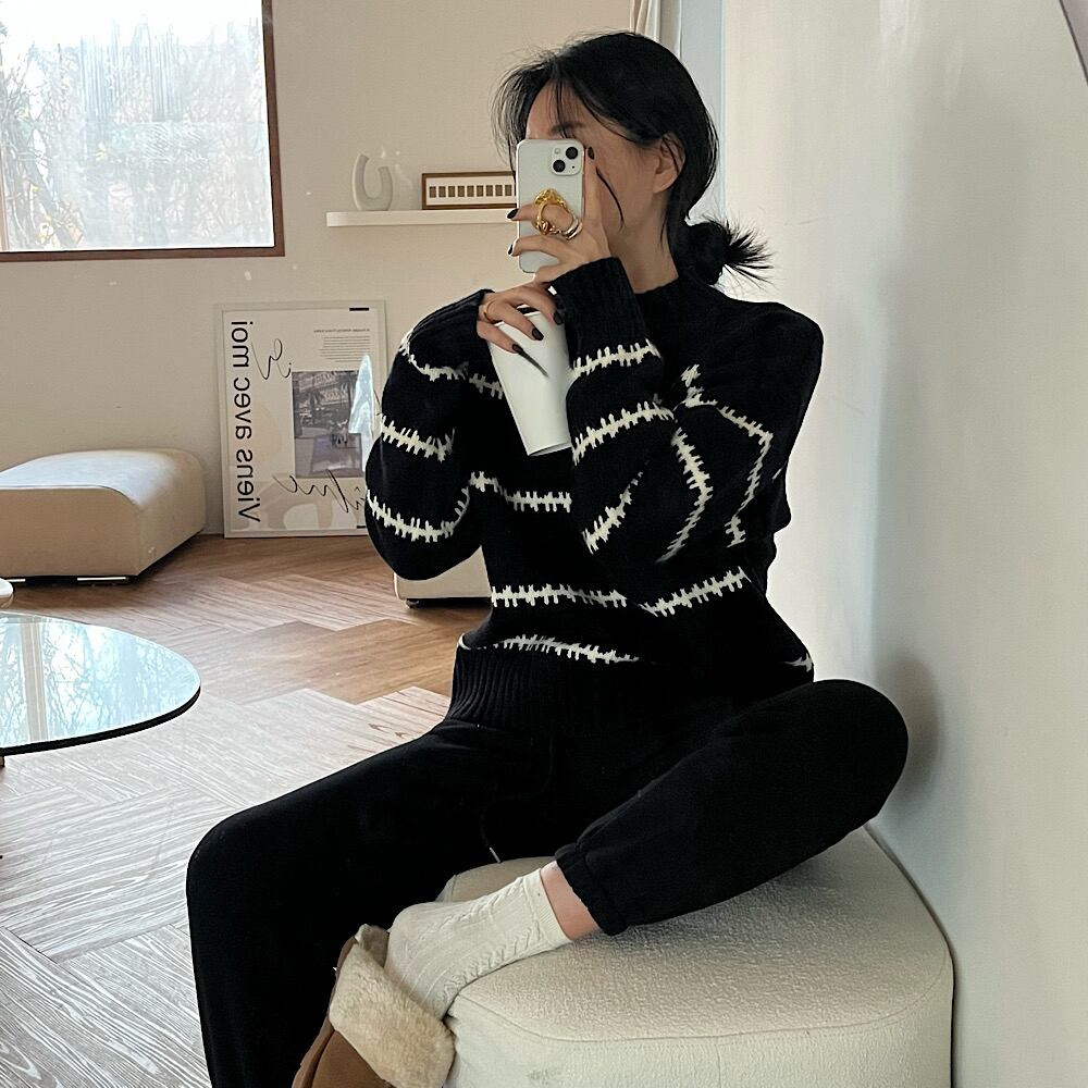 Nomikuma ストライプハーフカラーニットセーター女性シックな秋冬因果ニットトップス 2022 プルジャンパー オータム 秋物 ウィンター 冬物 kor81363970150