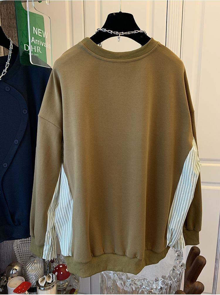 Nomikuma 2022 パッチワークストライプブラウスボタントレーナートップス女性偽二枚因果 2022 秋のプルオーバーパーカー オータム 秋物 kor57333255483