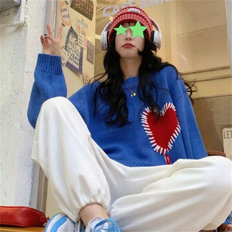 Nomikuma セーター女性秋冬プルシックなラブハートリボン因果長袖 O ネックプルオーバーニット ロング オータム 秋物 ウィンター 冬物 Oネック kor40832736948