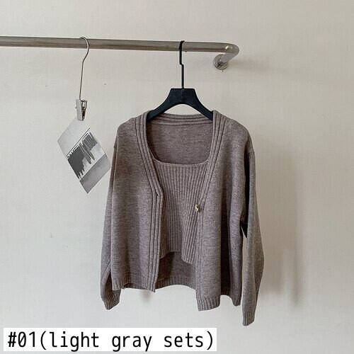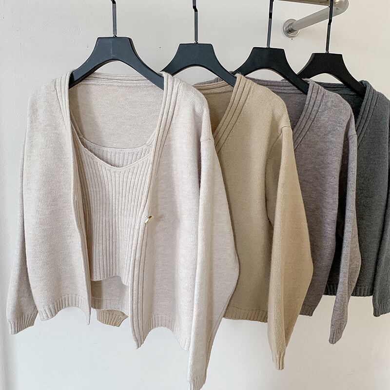 Nomikuma 因果無地セーターカーディガンコート 2022 秋の女性シングルボタンロングスリーブニット + ベーシックスリングベスト オータム 秋物 ソリッドカラー kor11500041336