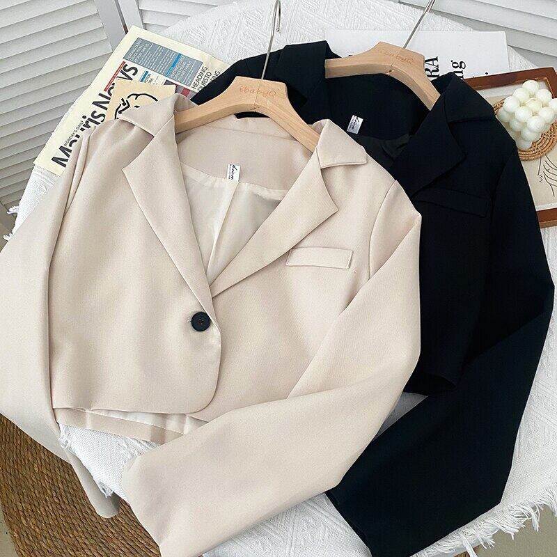 Nomikuma 2022 秋ターンダウン襟ロング Slevee スーツジャケット因果シングルボタンショート女性ブレザー無地コート オータム 秋物 ソリッドカラー kor8517986775