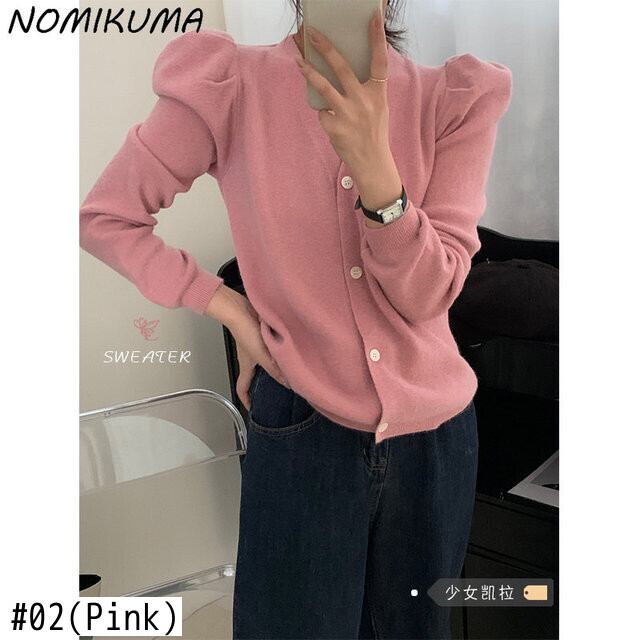 Nomikuma シックなパフスリーブ V ネックセーターコートの女性の秋のニットカーディガントップスソリッドニット生き抜く 2022 オータム 秋物 Vネック ソリッドカラー kor37882459630
